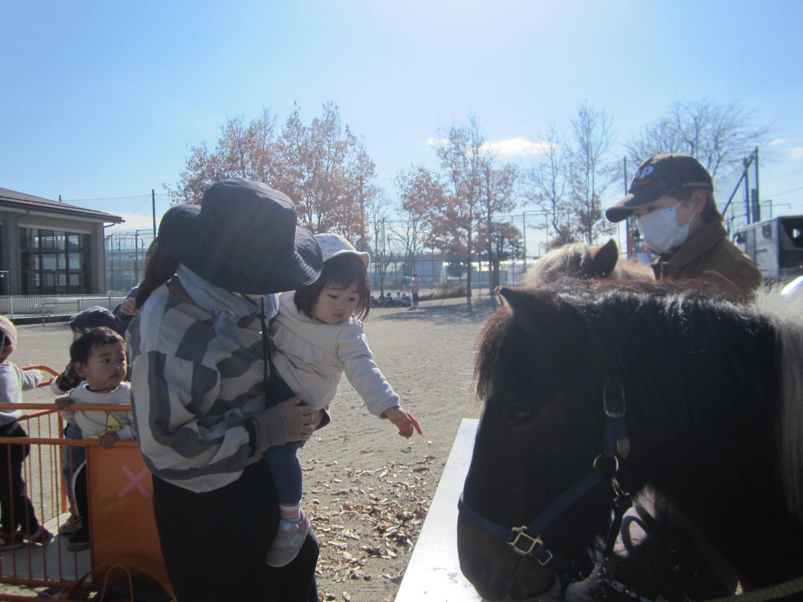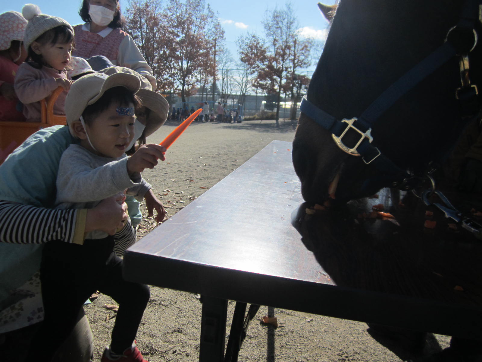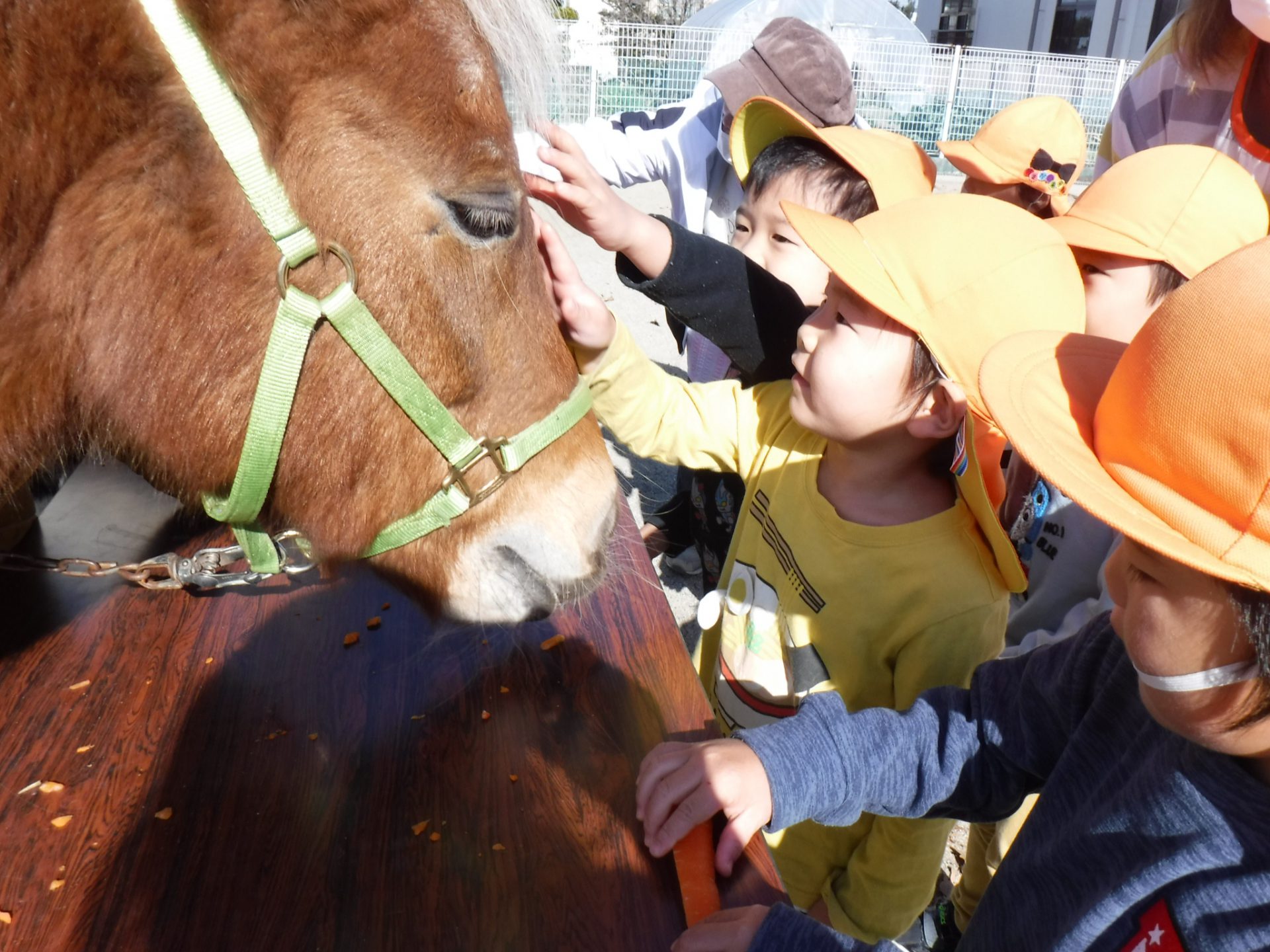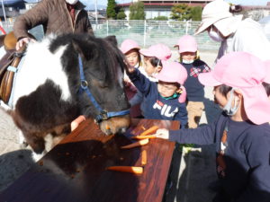 その後、全園児がニンジンをあげたり、顔をなでたり・・・