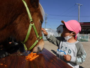 なかなか触れ合う機会がないので、乗せてもらったり、エサをあげたりできたことで子どもたちの記憶に残る体験になったのではないかと思います。またいろいろな生き物への関心がさらに広がると良いと思います。