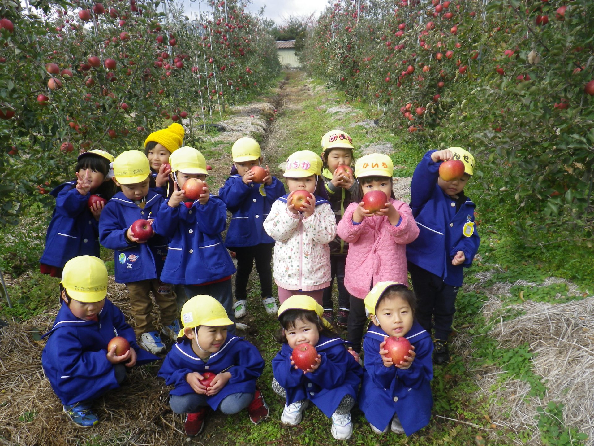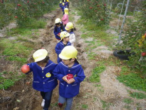 地域のりんご畑に行き、毎年楽しみにしているりんご狩りの収穫体験を行いました。