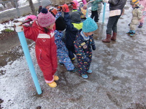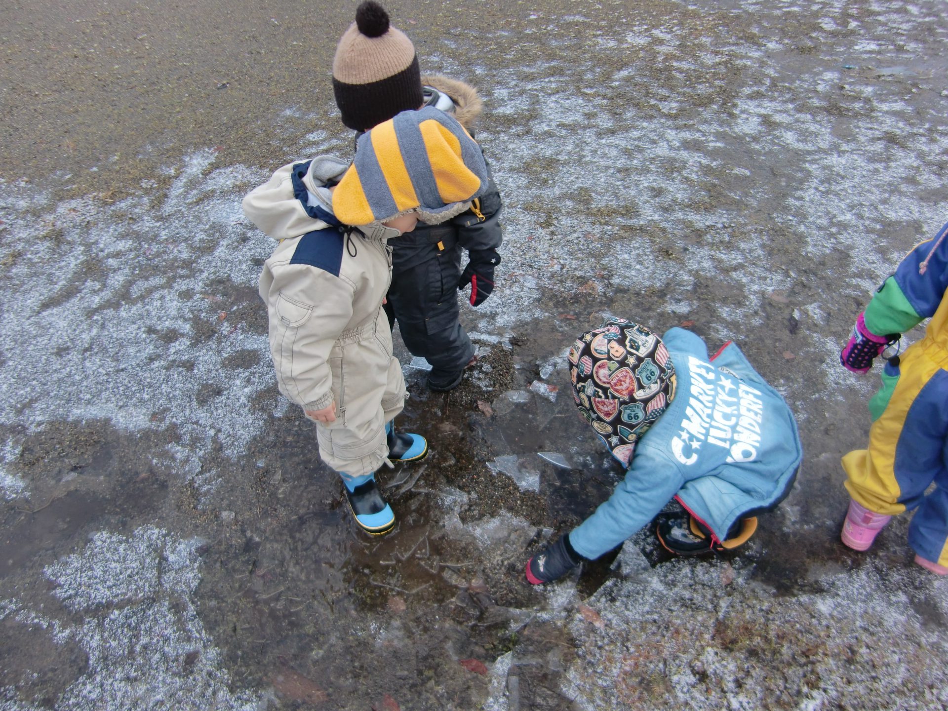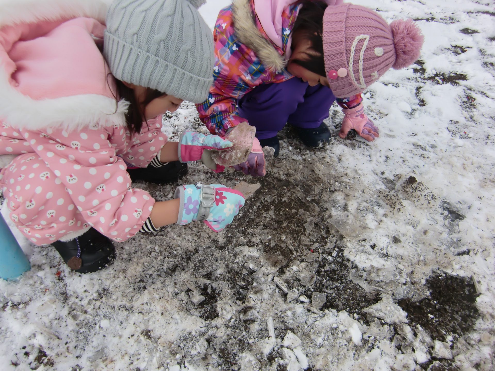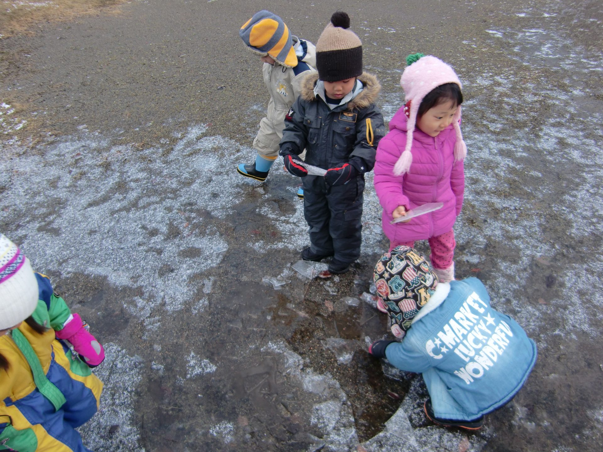 「氷の中に、葉っぱがある!!」「不思議だね?」
