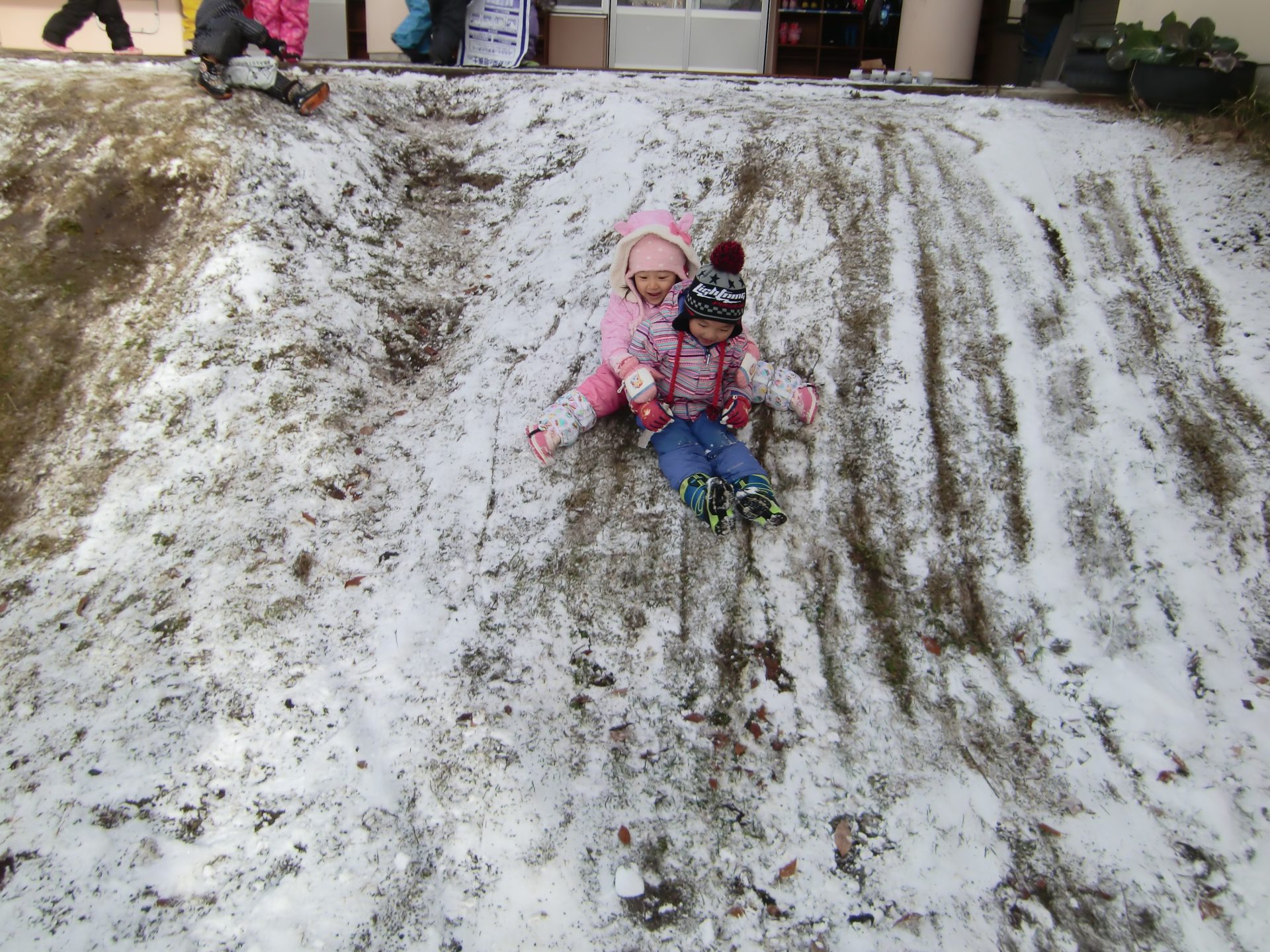 2人乗りをしたり、スーパーマンになって滑ったりと楽しんでいました。