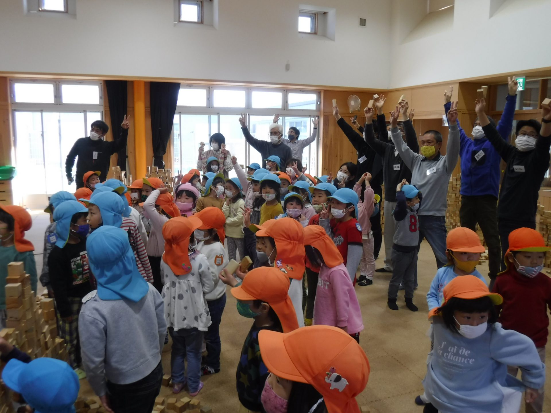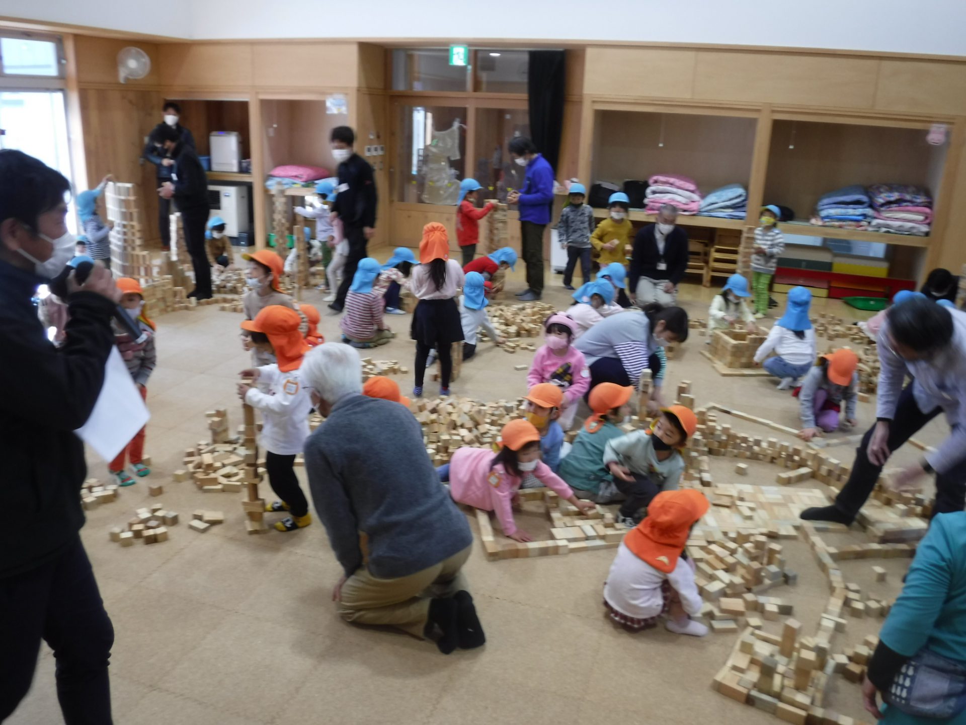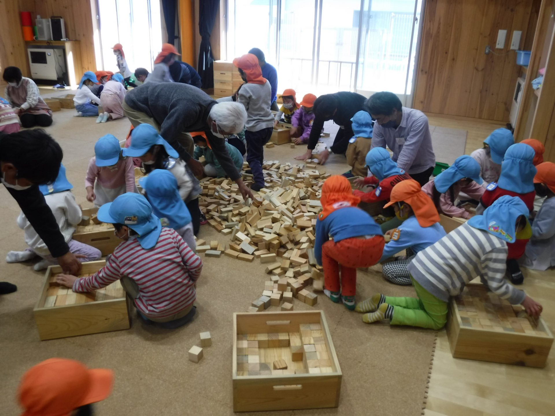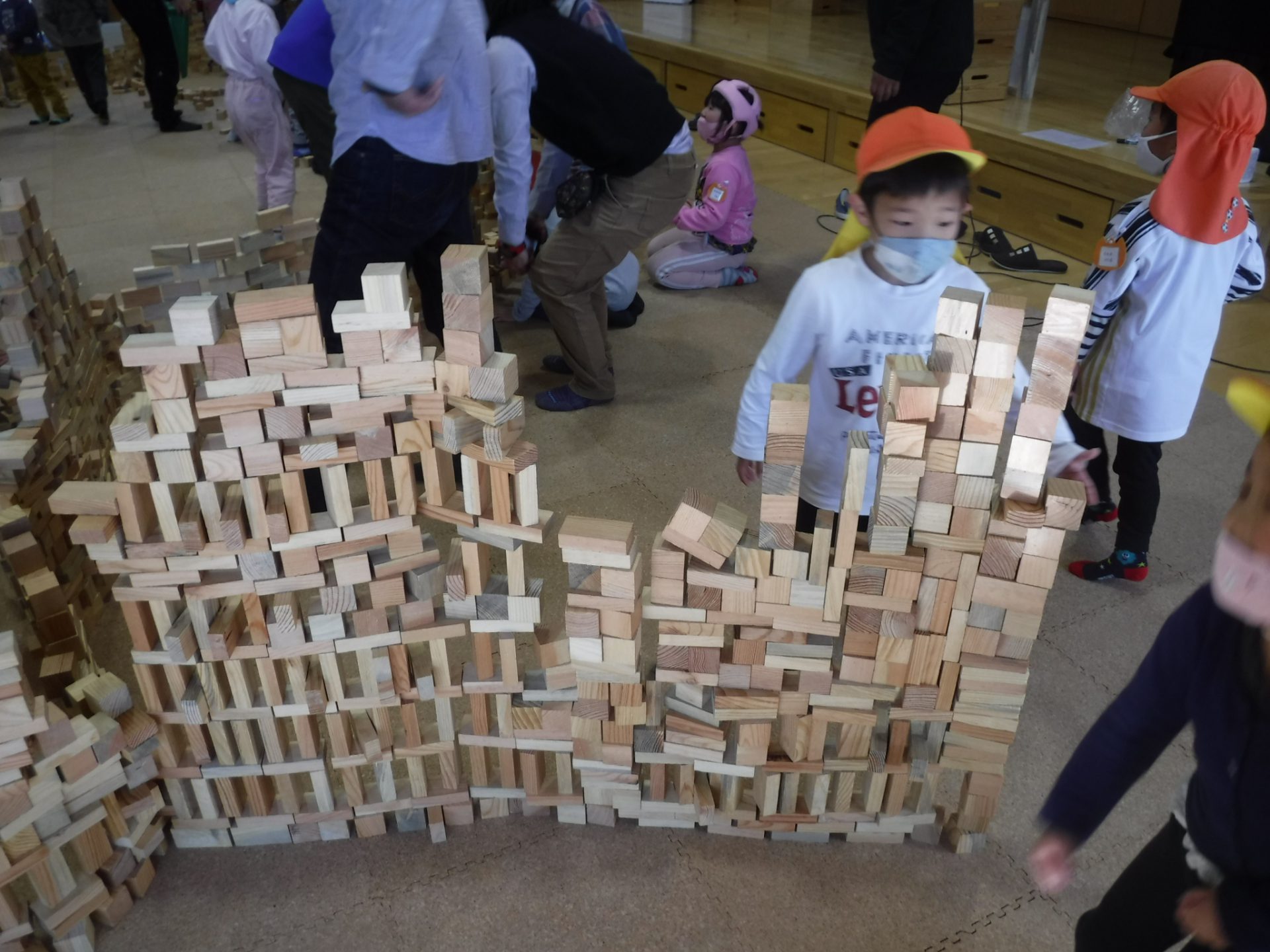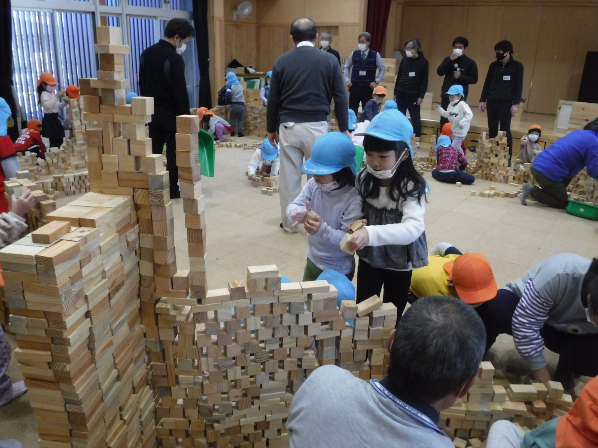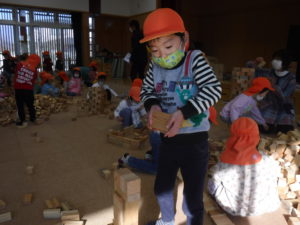 12月7日 〝安曇野市さとぷろ 積木キャラバン隊”の方々が1万個の積み木を持って積み木のワークショップを開いてくださいました。