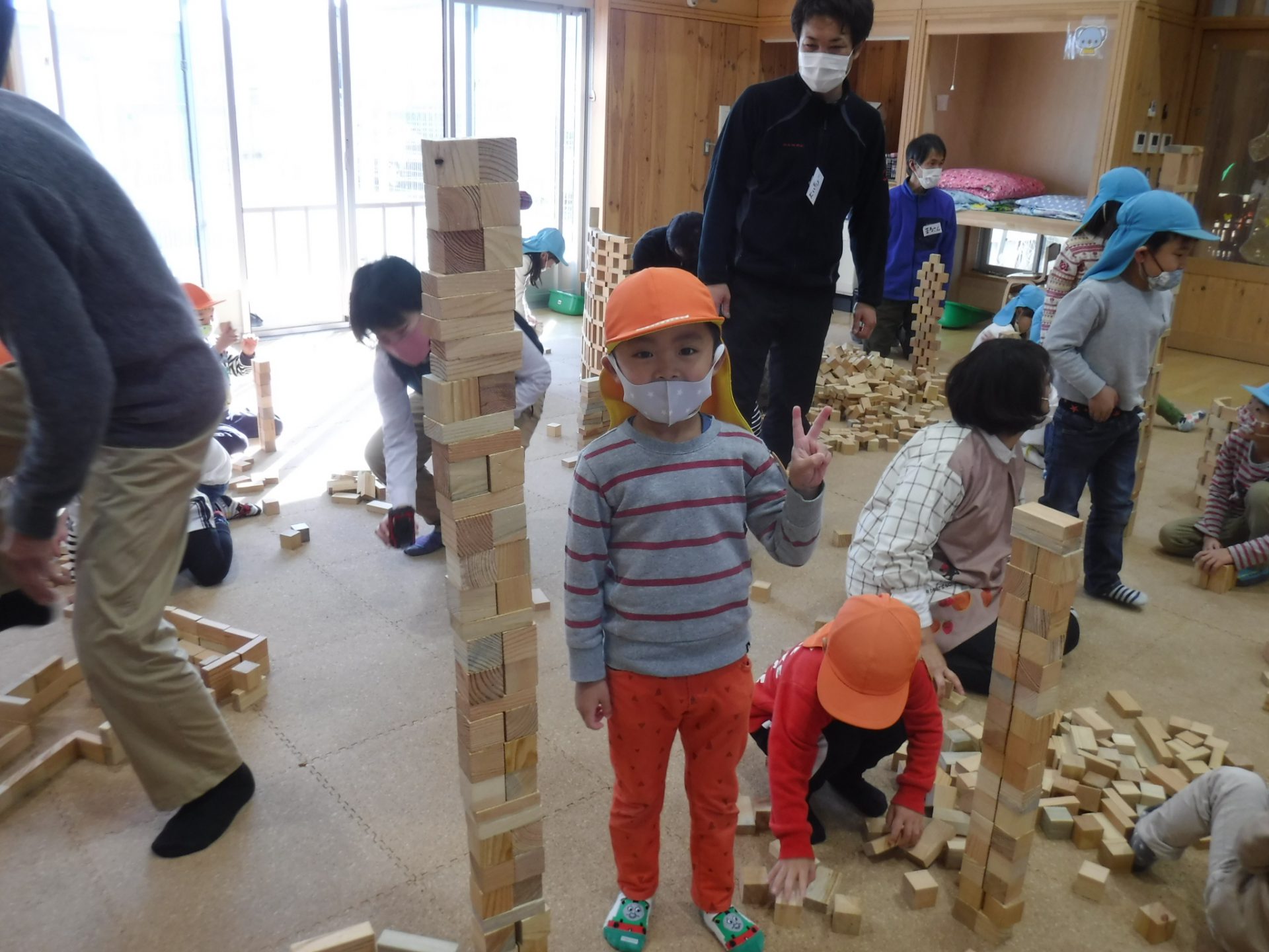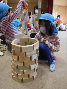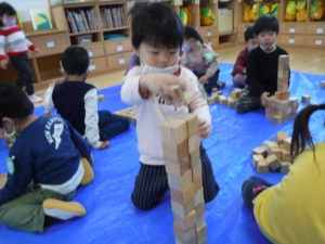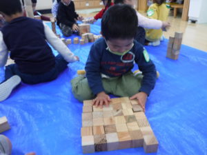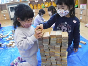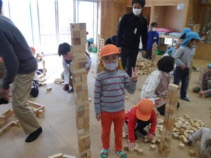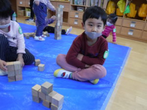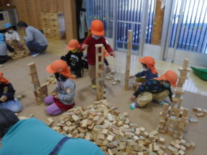 その後は自由に積み木で遊びました。