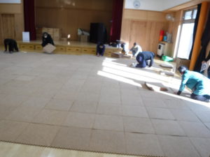 遊戯室にコルクマットを敷き詰め、準備完了!!