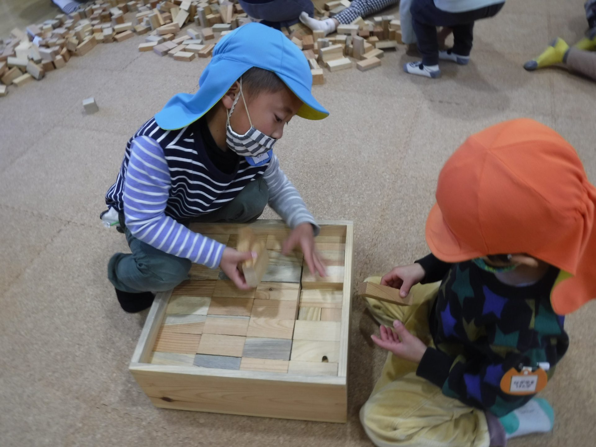 同じ形ごとに丁寧に並べ、箱に入れるお片付けもとても楽しそうにやっていました。