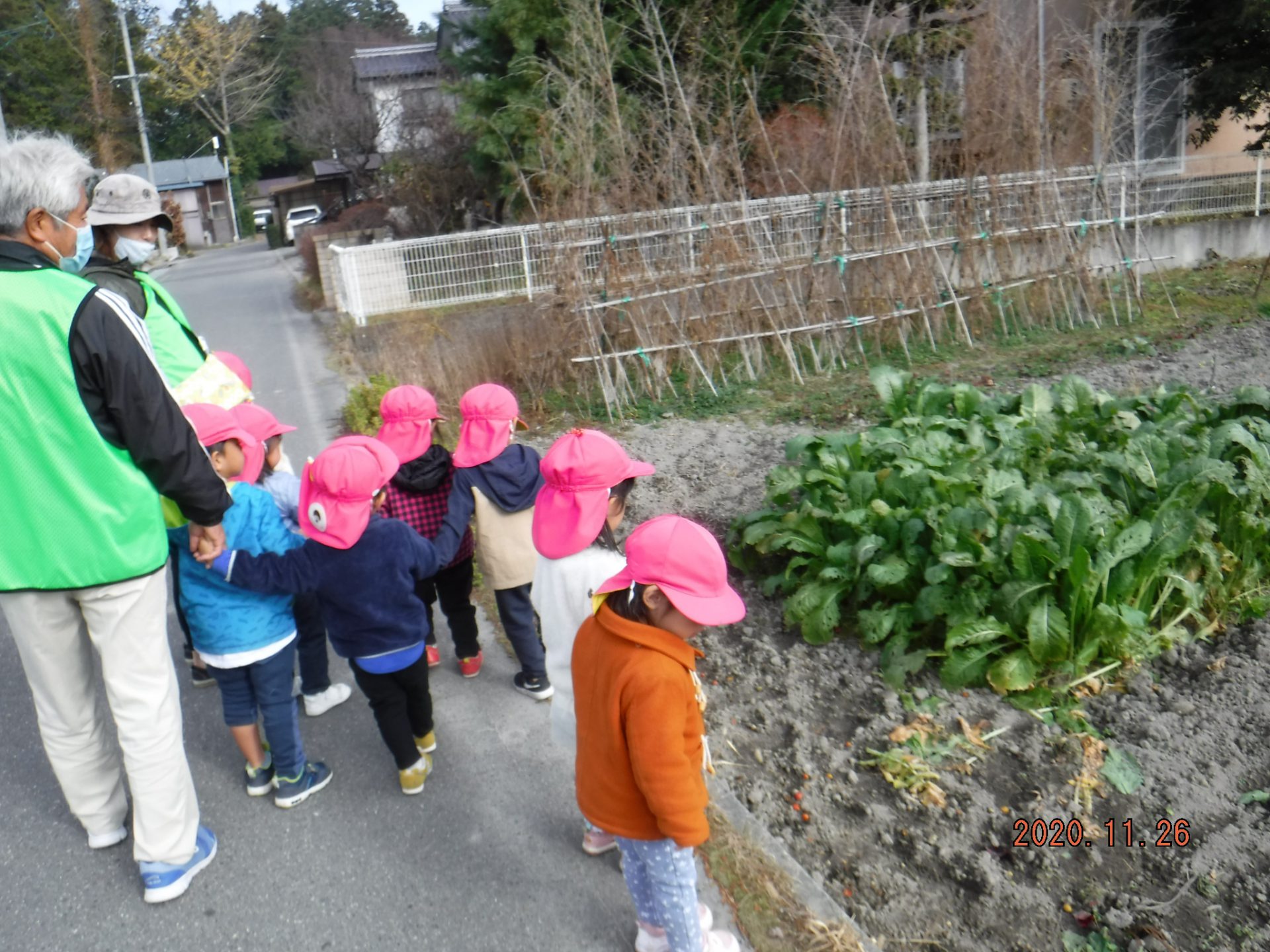 (前の週に散歩に行った時にはあった)「大根がないー」と気付いた言葉に、おじいちゃん先生が「これは野沢菜だよ」と教えてくれました。