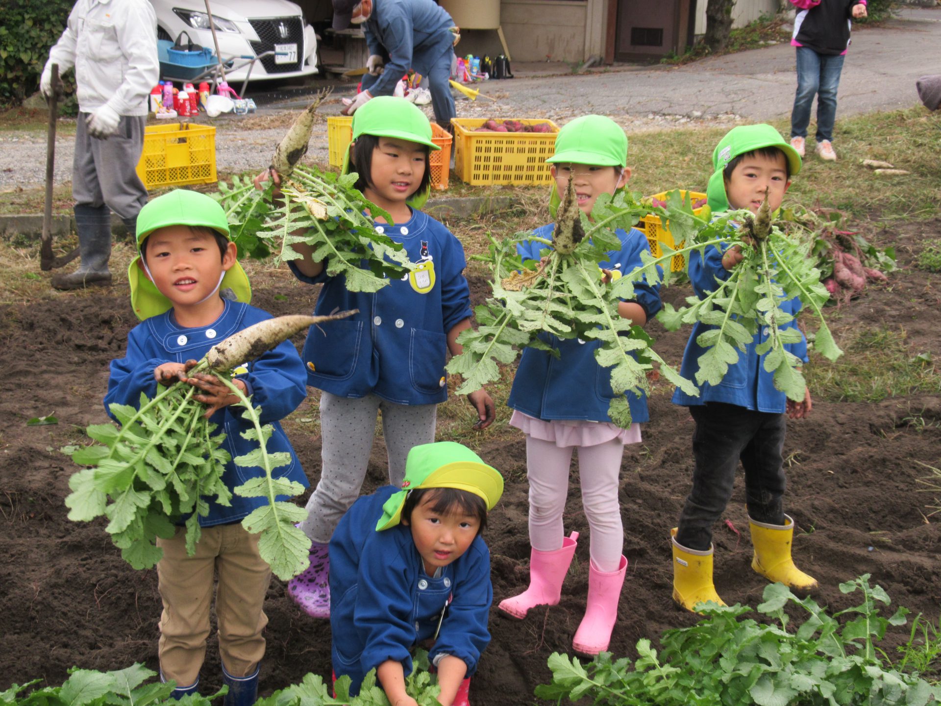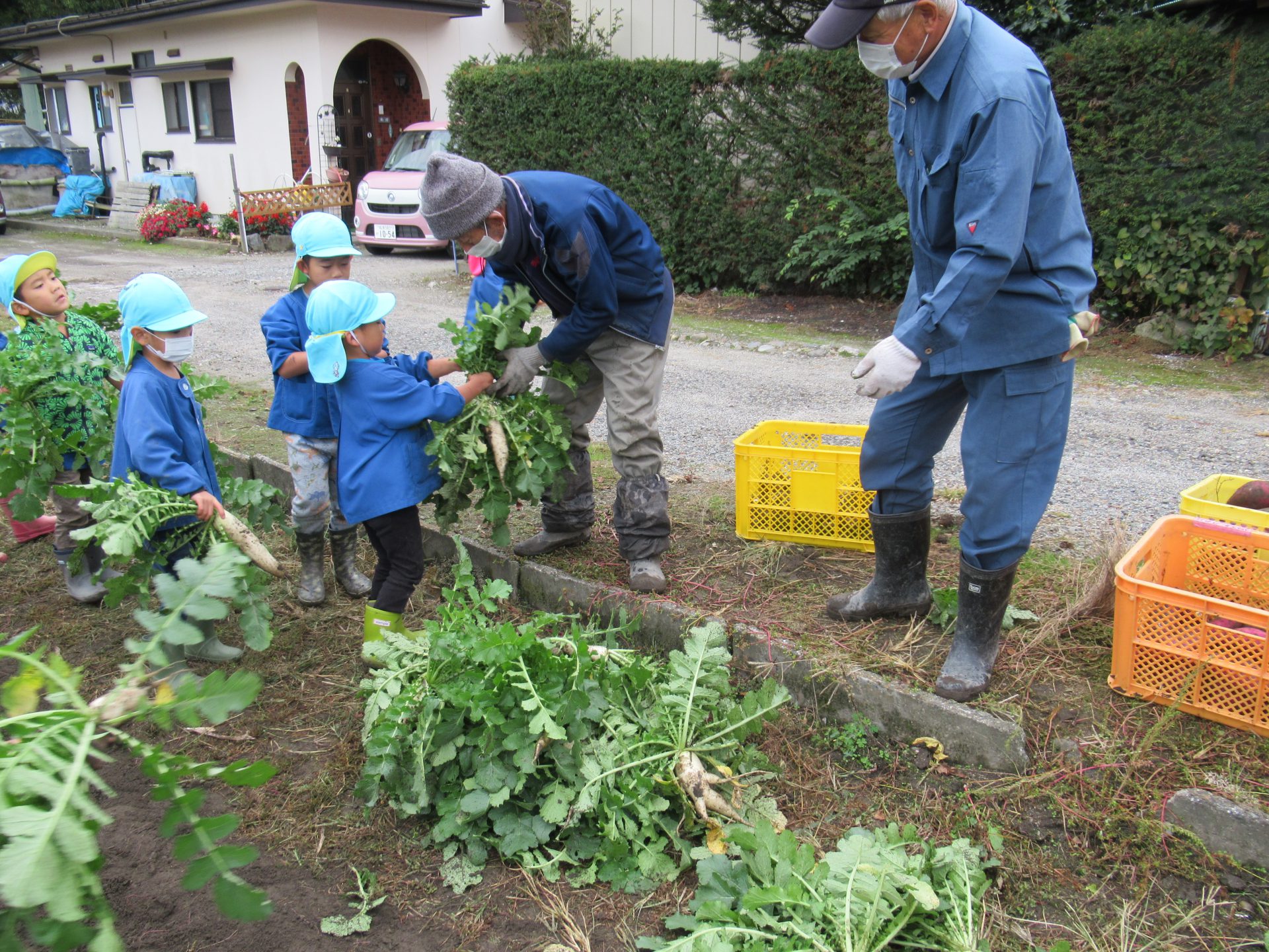 地域の皆さんやおじいちゃん先生のおかげで、立派な大根が育ち