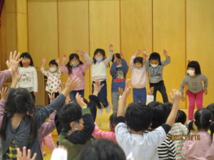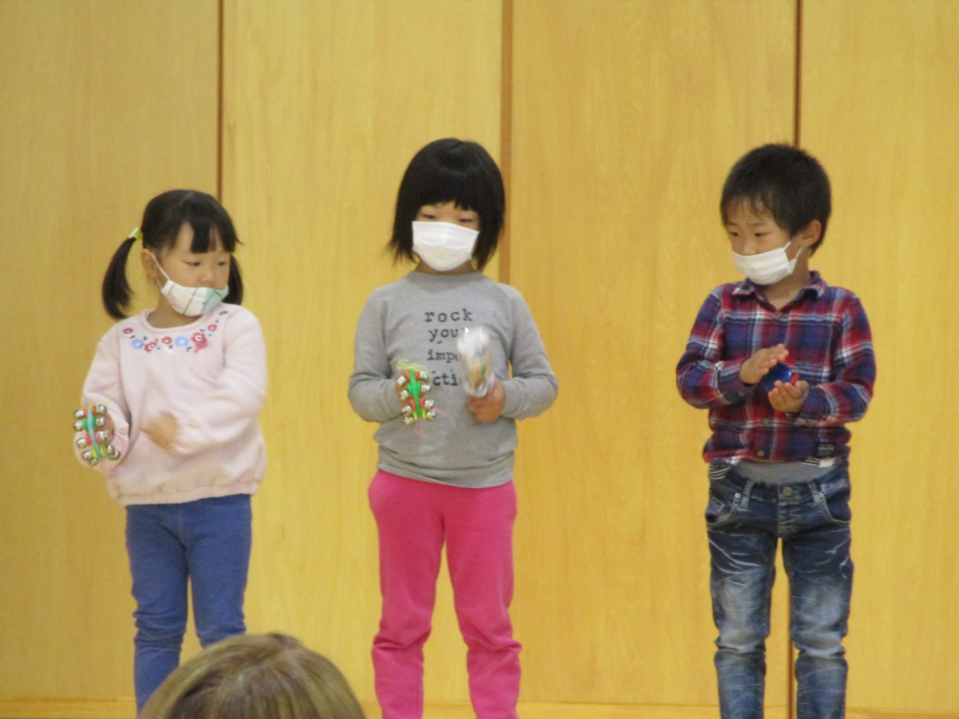 のちに ‟ 音楽会ごっこ ” をして歌ったり踊ったり手作りのマラカスを使った合奏を楽しみました。