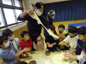 ☃できたおもちを触ったりこねたりしてみよう