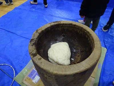 ☃蒸かしたもち米でいよいよもちつき♪
