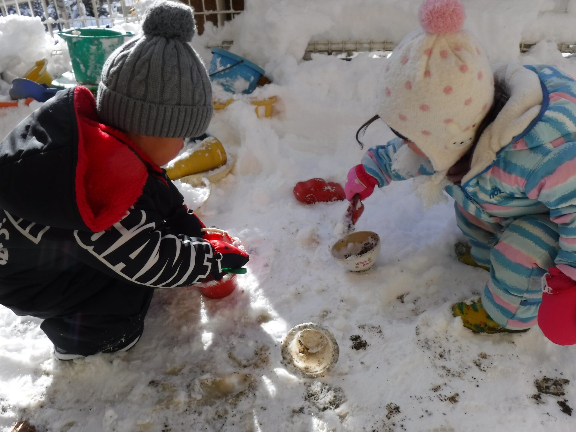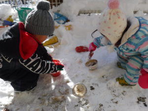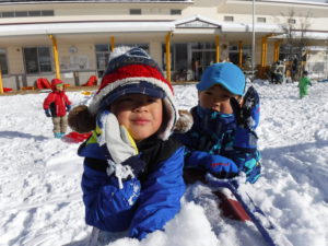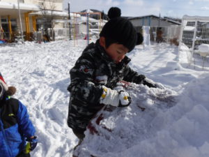 自分達で、いろいろな遊びを工夫して雪に絡めて遊んでいる様子も伺えます。