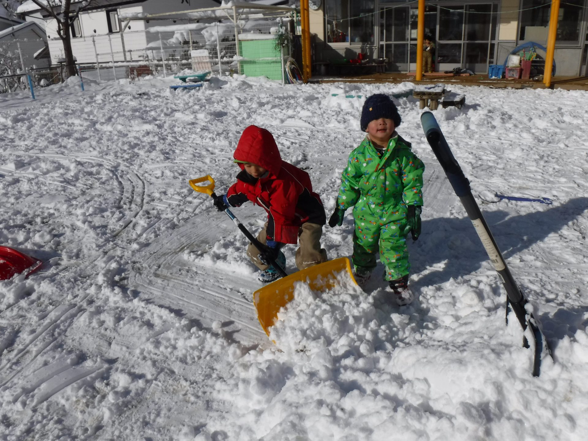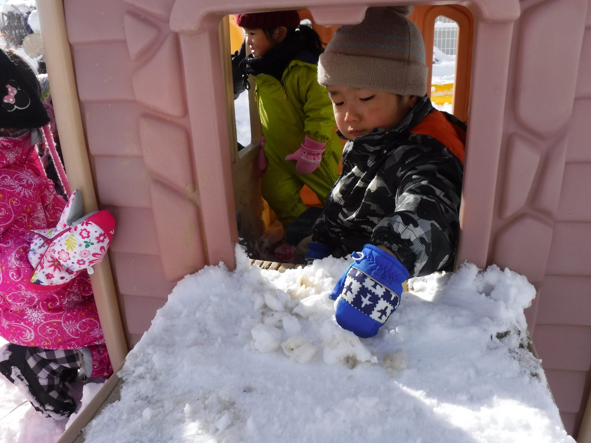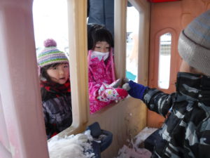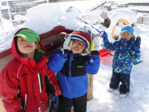 今年初の大雪で子ども達は、朝から庭で遊びを満喫。