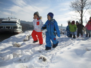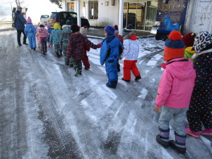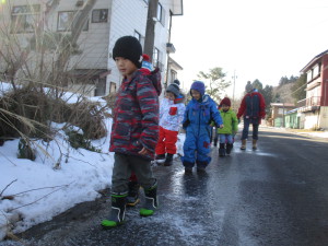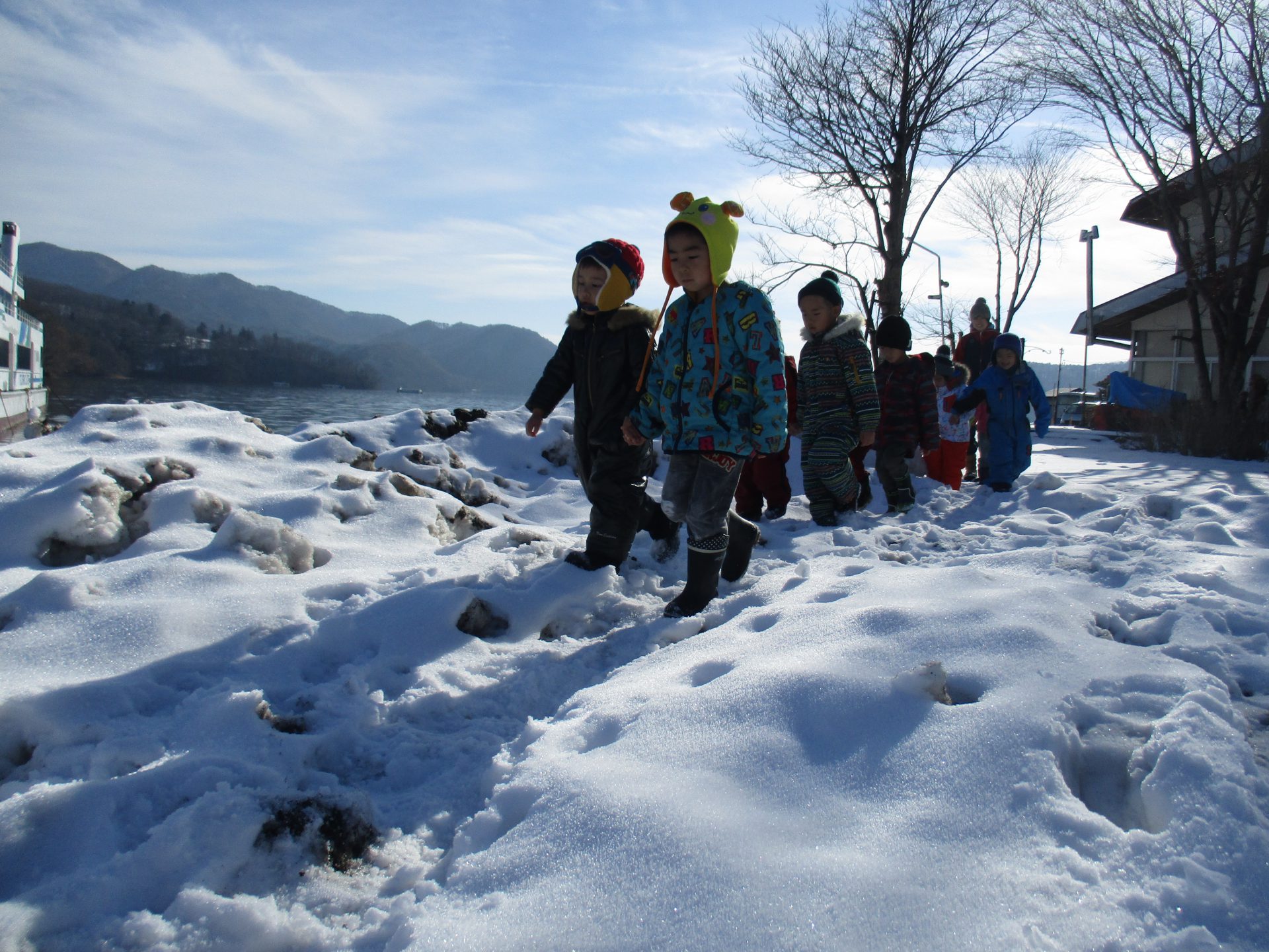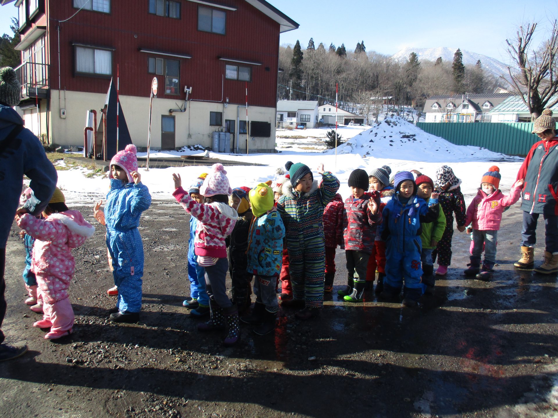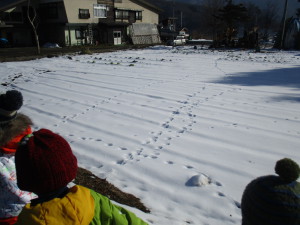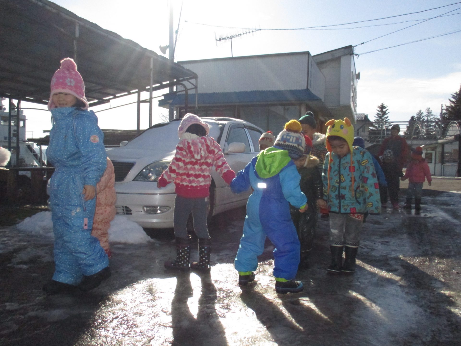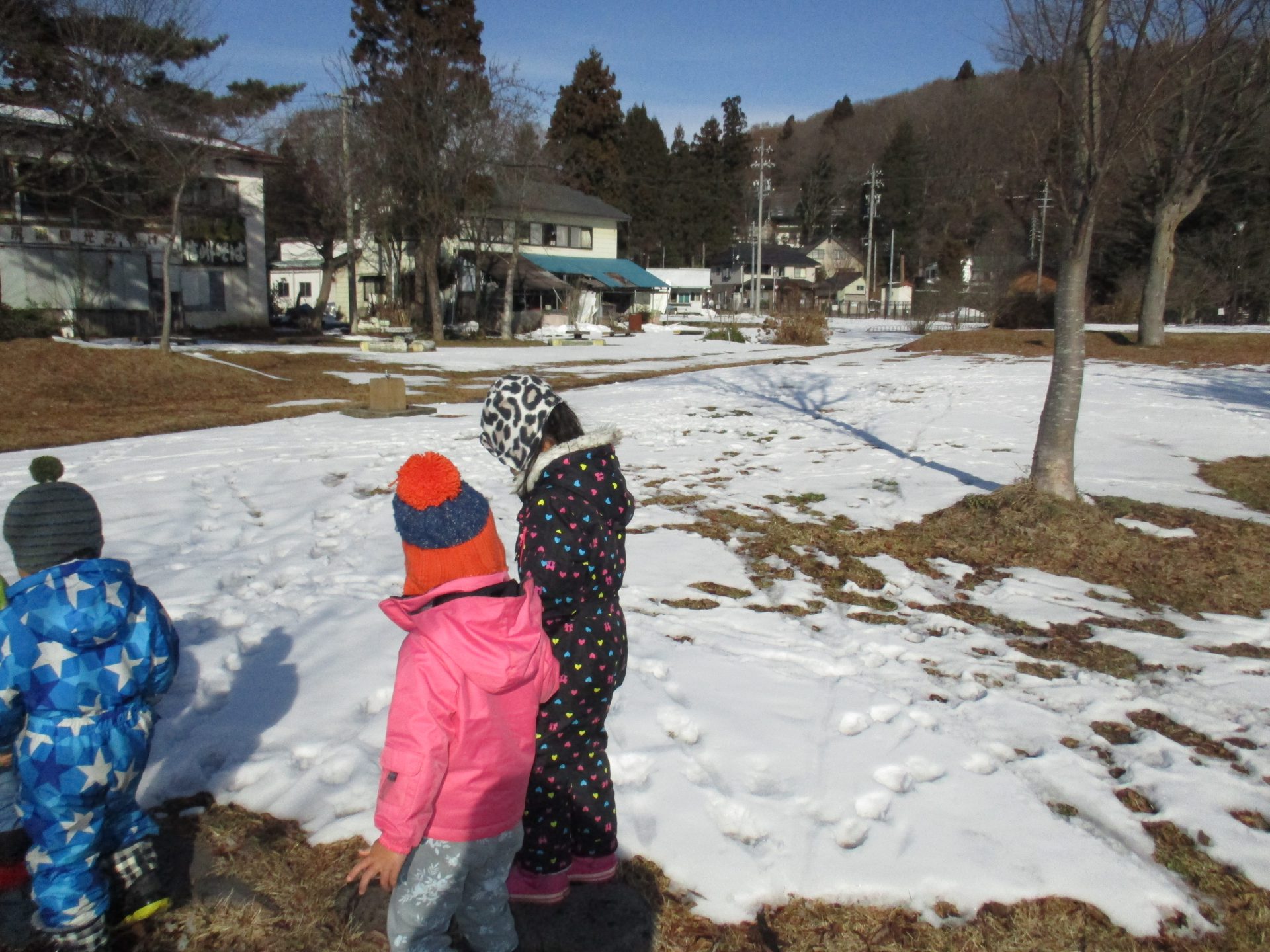 冬の戸外遊びといえば、雪遊び。今年は雪が多いと言われていますが、あたたかな日が続いています。