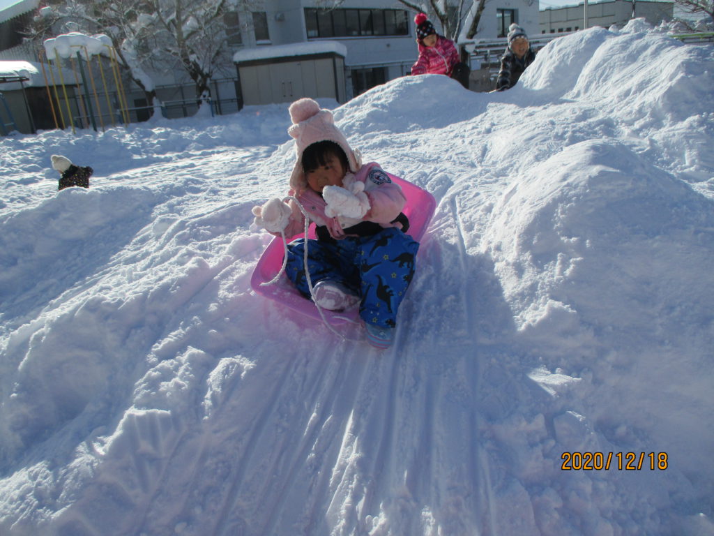 ソリ滑りやお風呂作り、雪合戦、などなど・・・色々な遊びを楽しんでいます。これからまだまだ雪遊びが広がっていくでしょう。