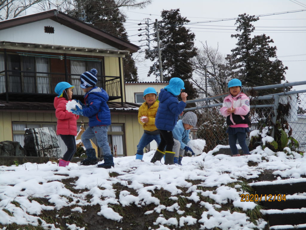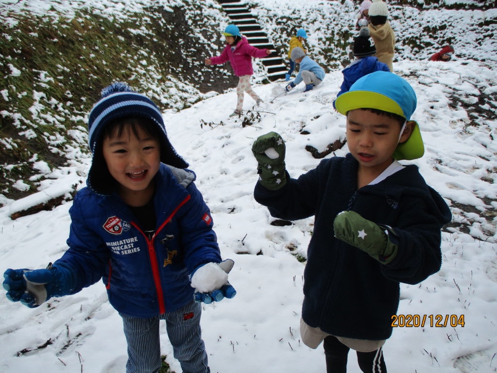 うっすらと雪の積もった日‥「雪積もったね」「雪遊びしようよ!」「手袋とかウェアー持ってきたよ」と雪遊びするのを楽しみに登園してきました。