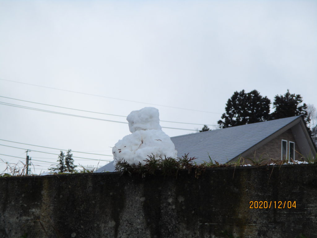 「転がすだけで雪玉になるねぇ!」水を含んだ雪。簡単に雪だるまが作れました。その雪だるまを部屋の中からも見える場所に置いておきました。