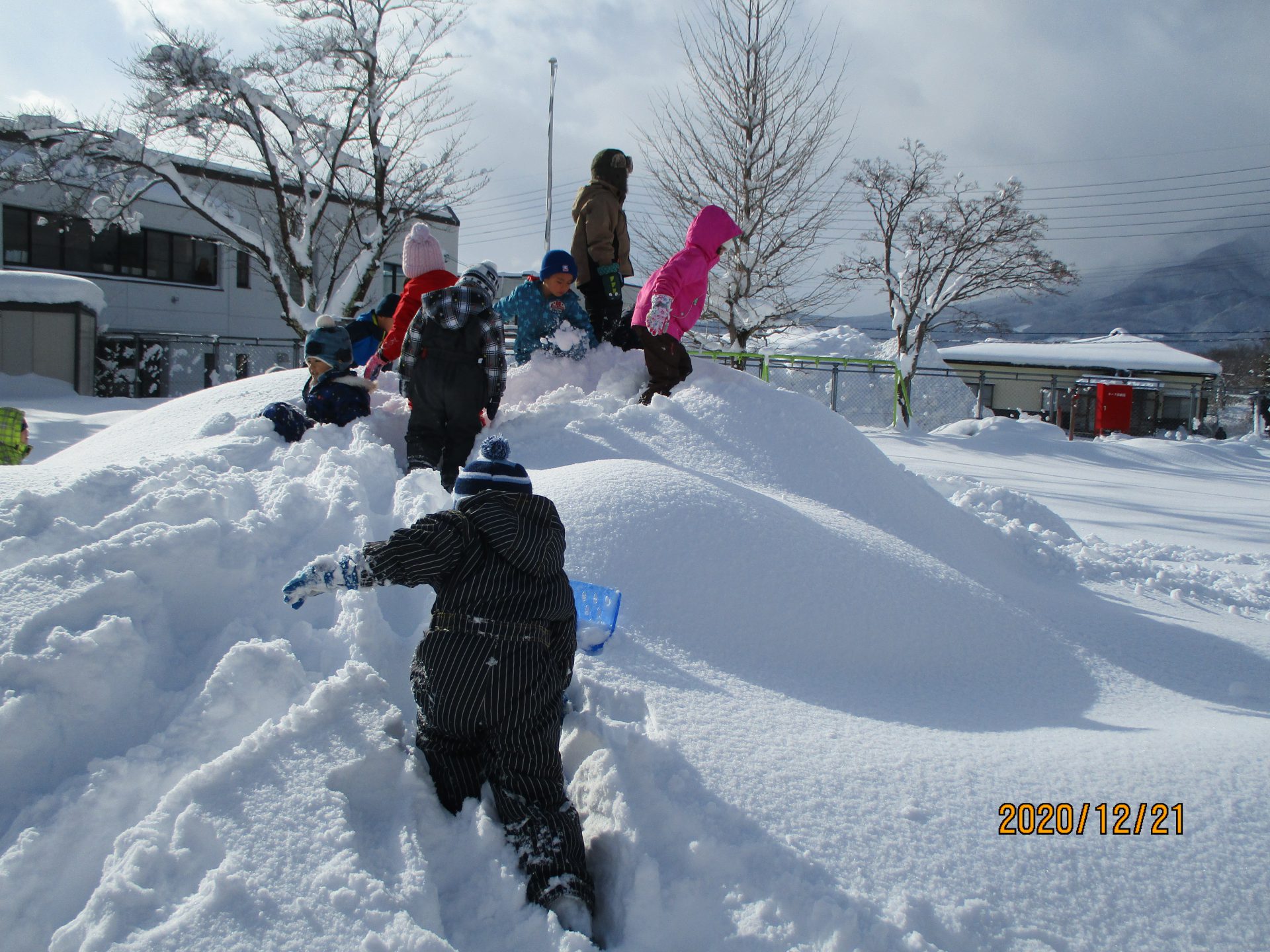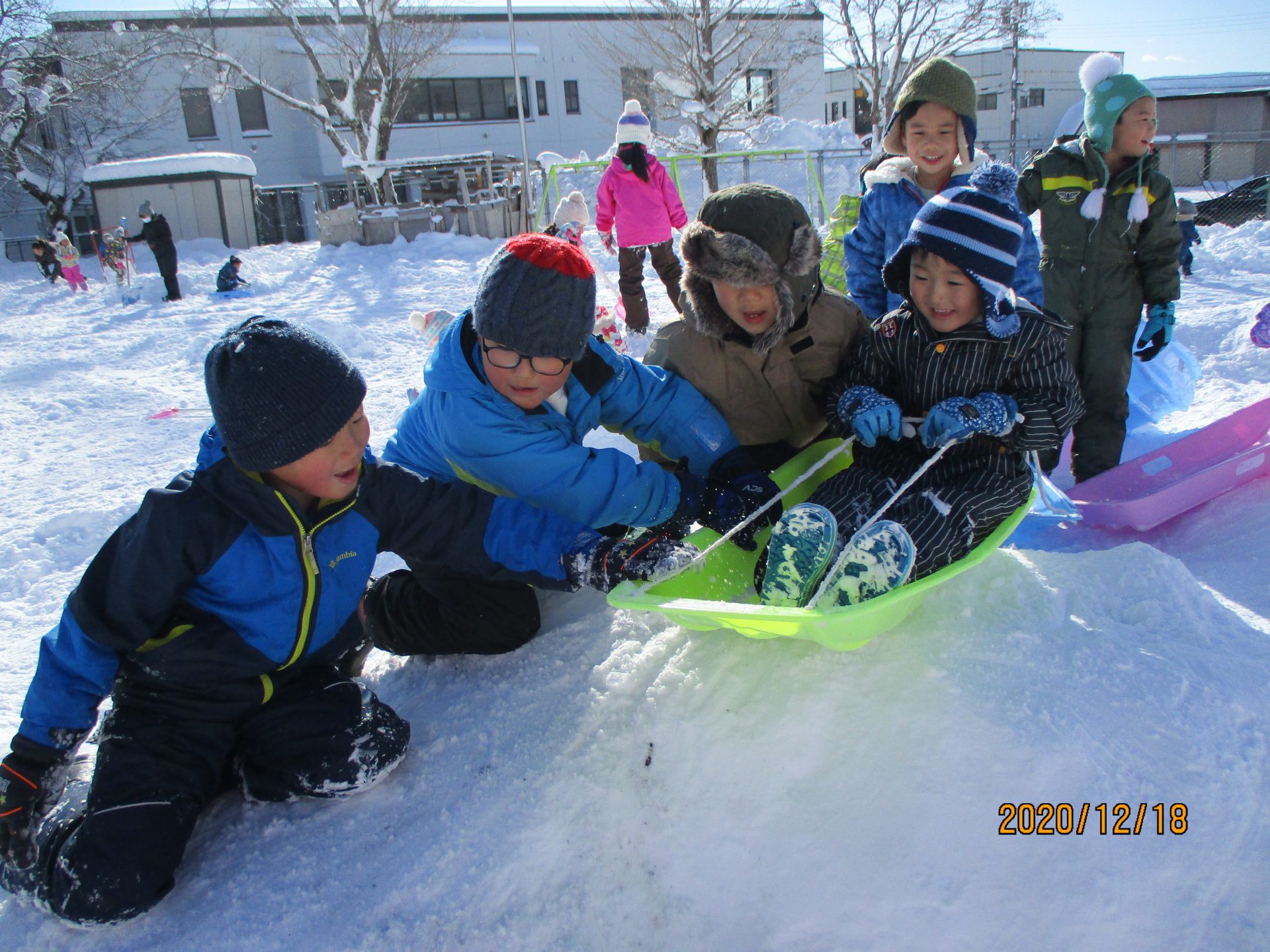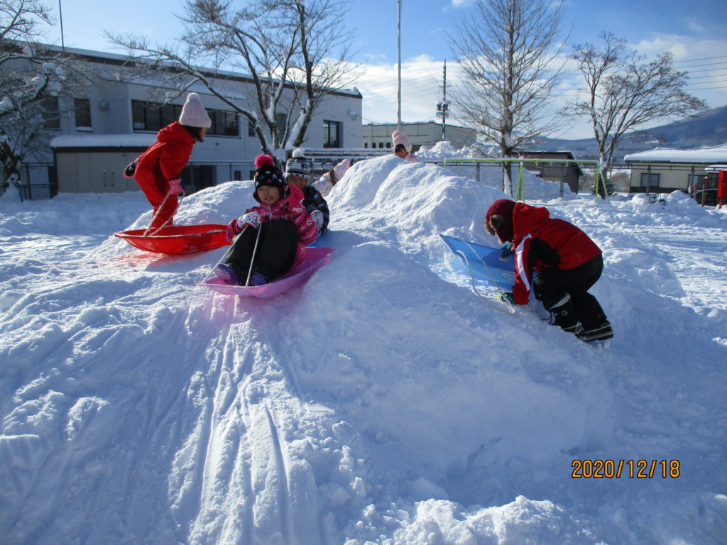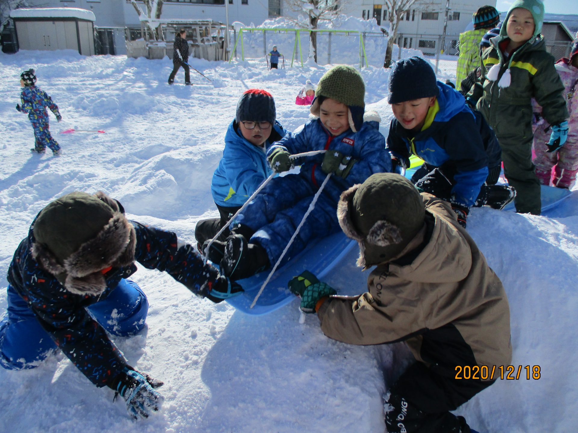 ソリ滑りやお風呂作り、雪合戦、などなど・・・色々な遊びを楽しんでいます。これからまだまだ雪遊びが広がっていくでしょう。