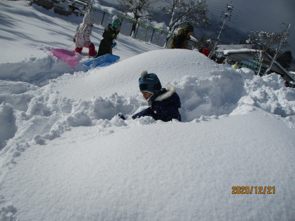 こんなに雪が積もりました!日に日に増えていく雪に遊び方も変わっていきます。
