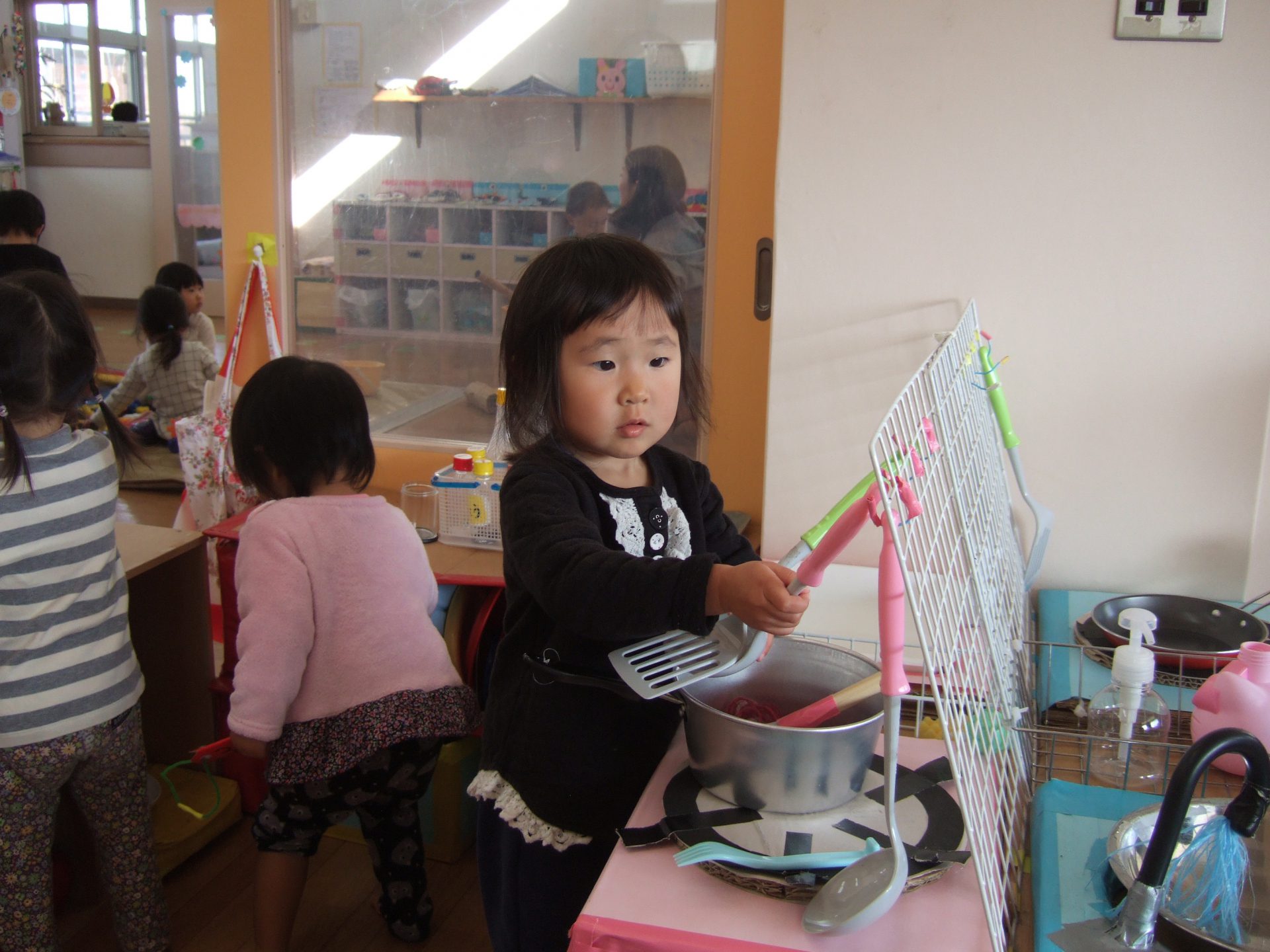 さくらんぼさんのお友達が作っているのを真似て、一緒に作り出しました。