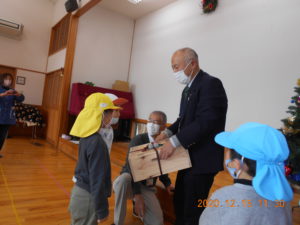 赤松がなぜ松枯れをしたのか「くくじいとあかまつ」の手作り紙芝居を見て学びます。みんな真剣に見ています。