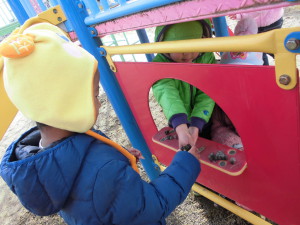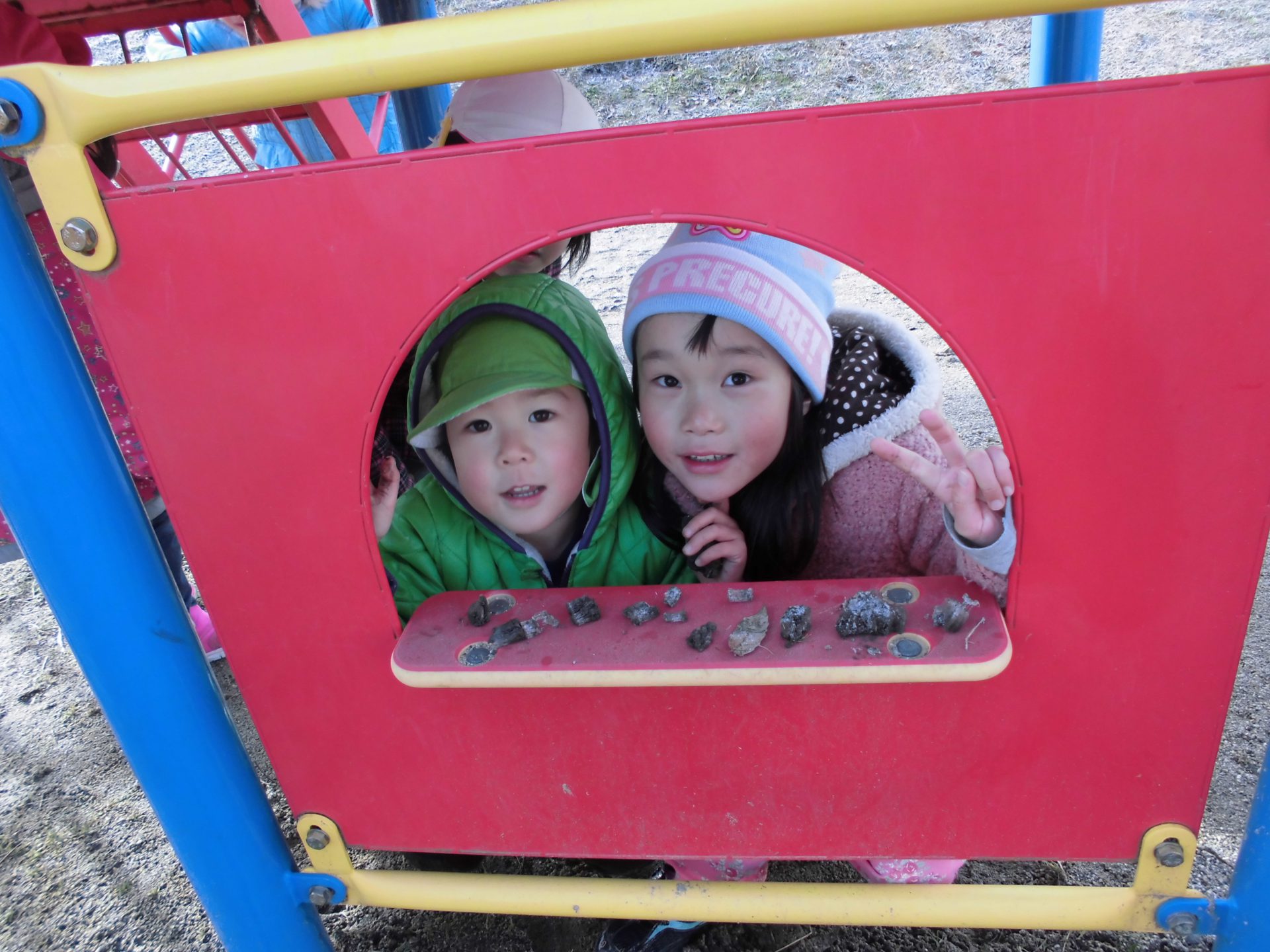霜がおりた寒い朝でも 子ども達は元気いっぱい園庭に飛び出す。