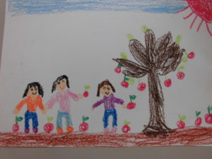 地域の方のご厚意で、りんご狩りをさせて頂きました。安曇野の特産品でもあるりんご