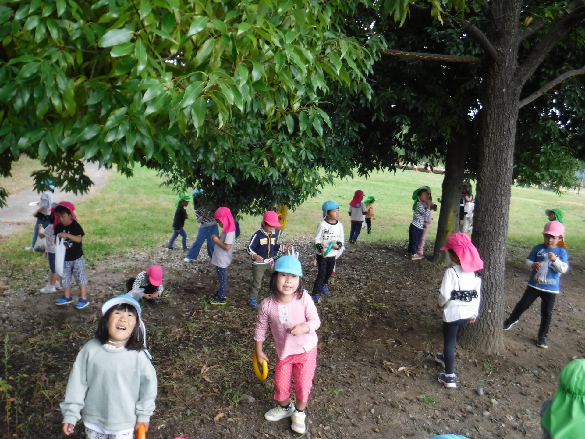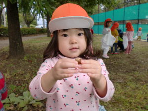 秋のお散歩で、どんぐりや、松ぼっくり、木の枝などたくさんの自然物を拾い集めてきました。