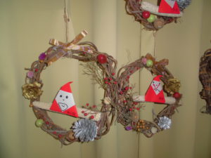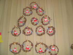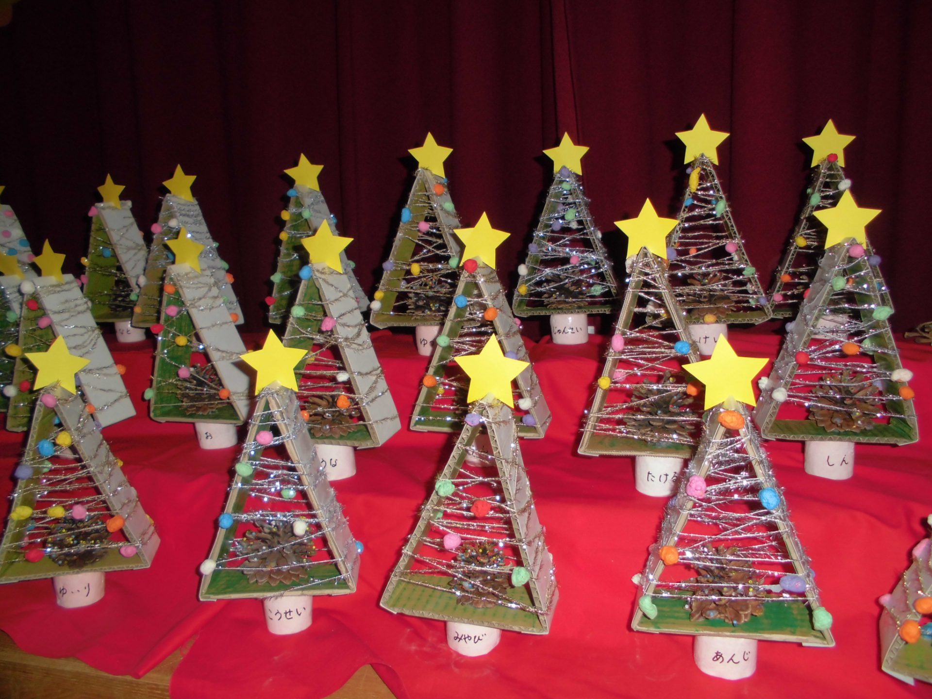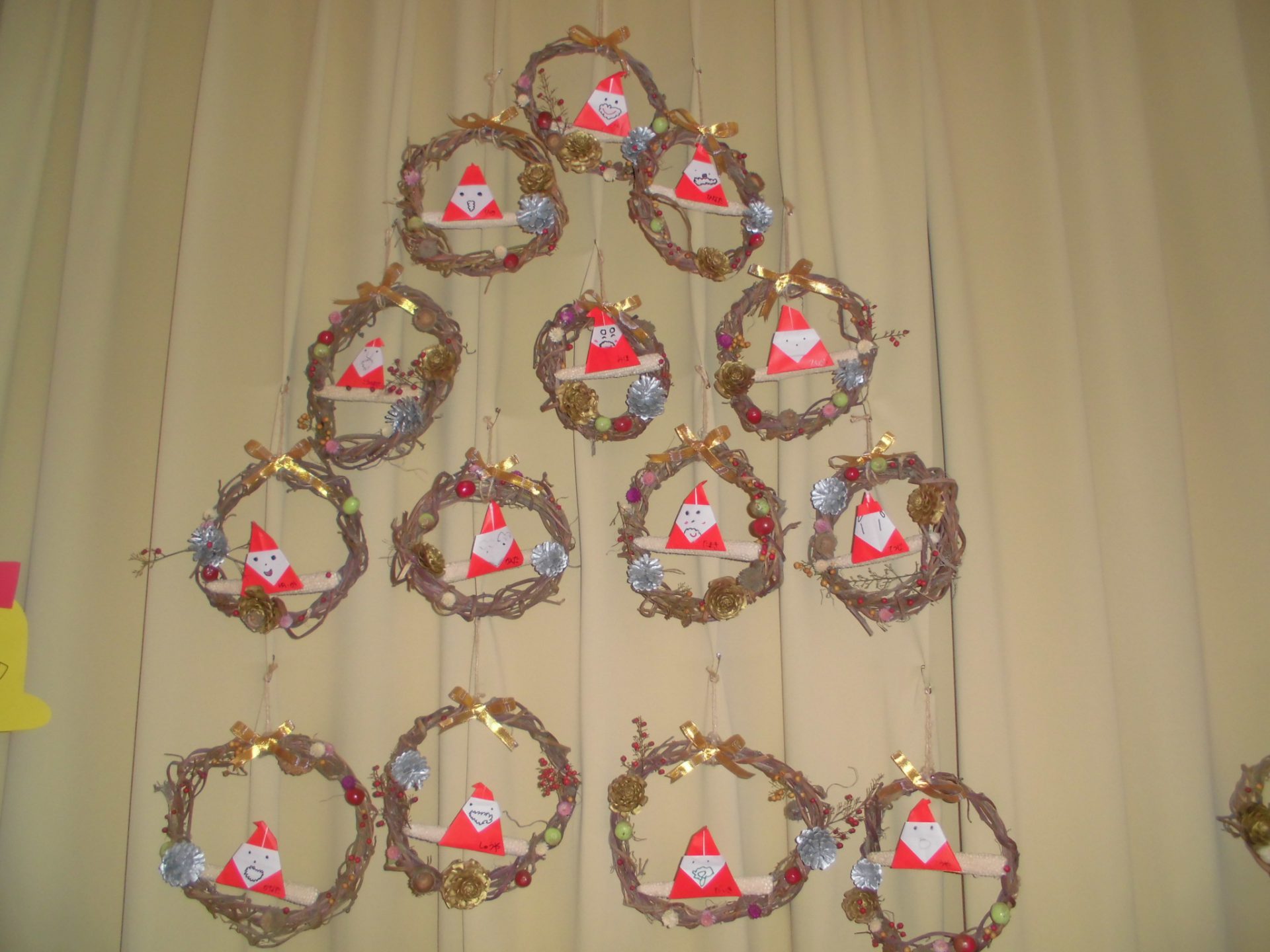 自然物のあたたかな風合いはクリスマス飾りにぴったり という事で、クリスマス制作に各学年自然物を用いました。