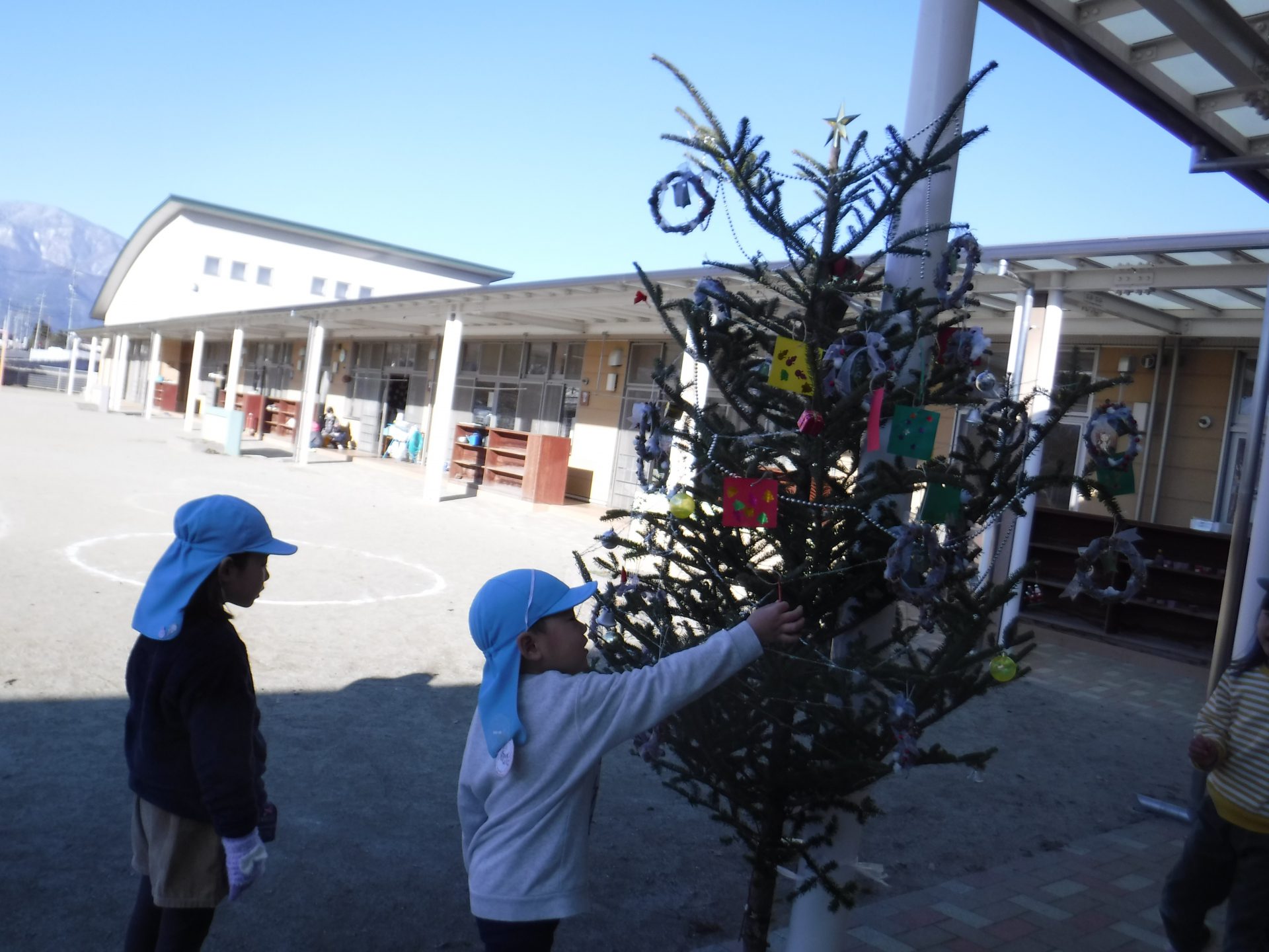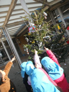 さらに、森林組合より、本物のもみの木を頂き、ツリーにして飾りました。