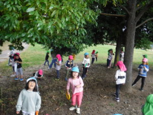 自分たちが畑で育てたものを使ったり、お散歩で拾い集めたものを使った事で、その時の思い出も作品の形の中に込められた様です。