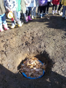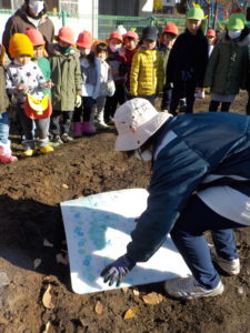 子ども達は、しばしの間、春になるまでみどりちゃんとは、お別れです。一人一人みどりちゃんに「おやすみ」を言って、ふれあっていました。