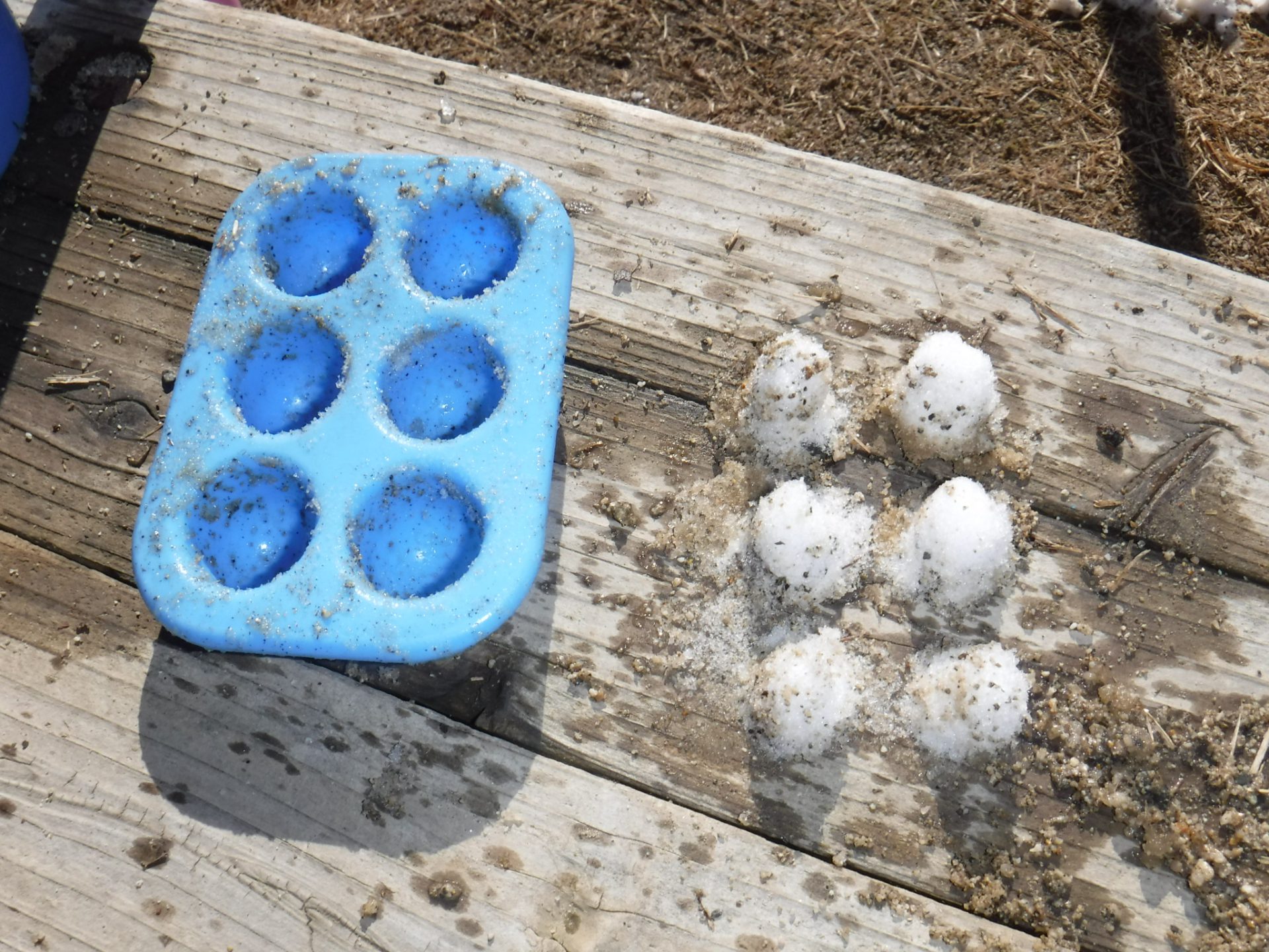 こちらではバケツをひっくり返して・・・「ケーキみたい!」