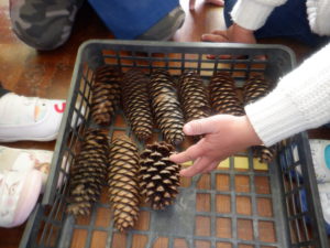・まつぼっくりにもいろいろな種類があることを知ってほしいと願い保育士が操作したところもあったが、興味を持つことはできたように思う。
