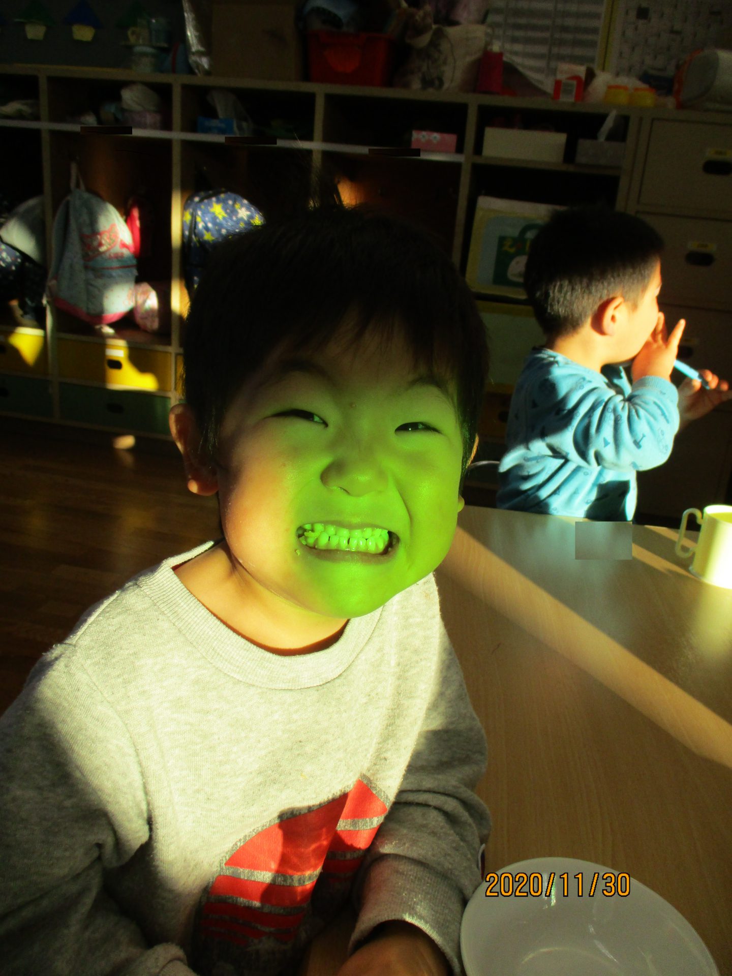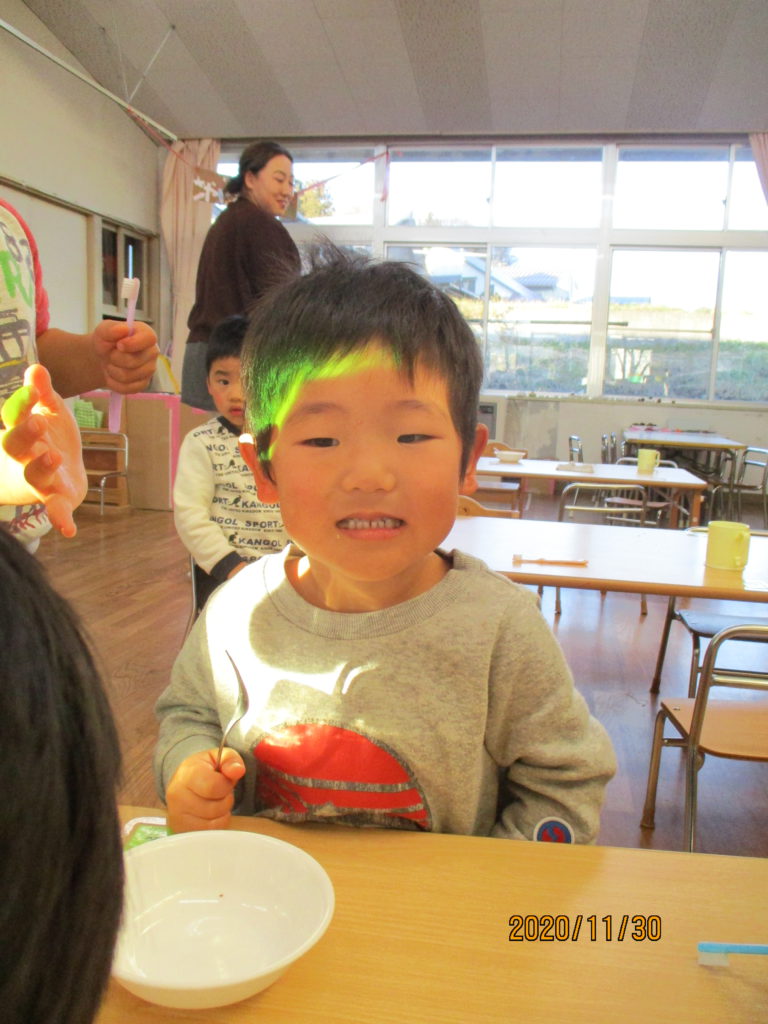 「みどりになってる!」「わぁあ」「うちゅうじんみたい!」とクラスで大盛り上がり。