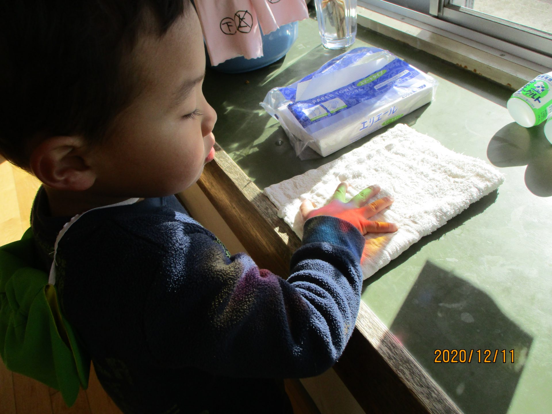 春夏秋の季節にはなかった冬ならではの光に気づき、保育園の中に差す光を見つけてはお友だちや保育士に「ひかりあったよ!」教えてくれました。