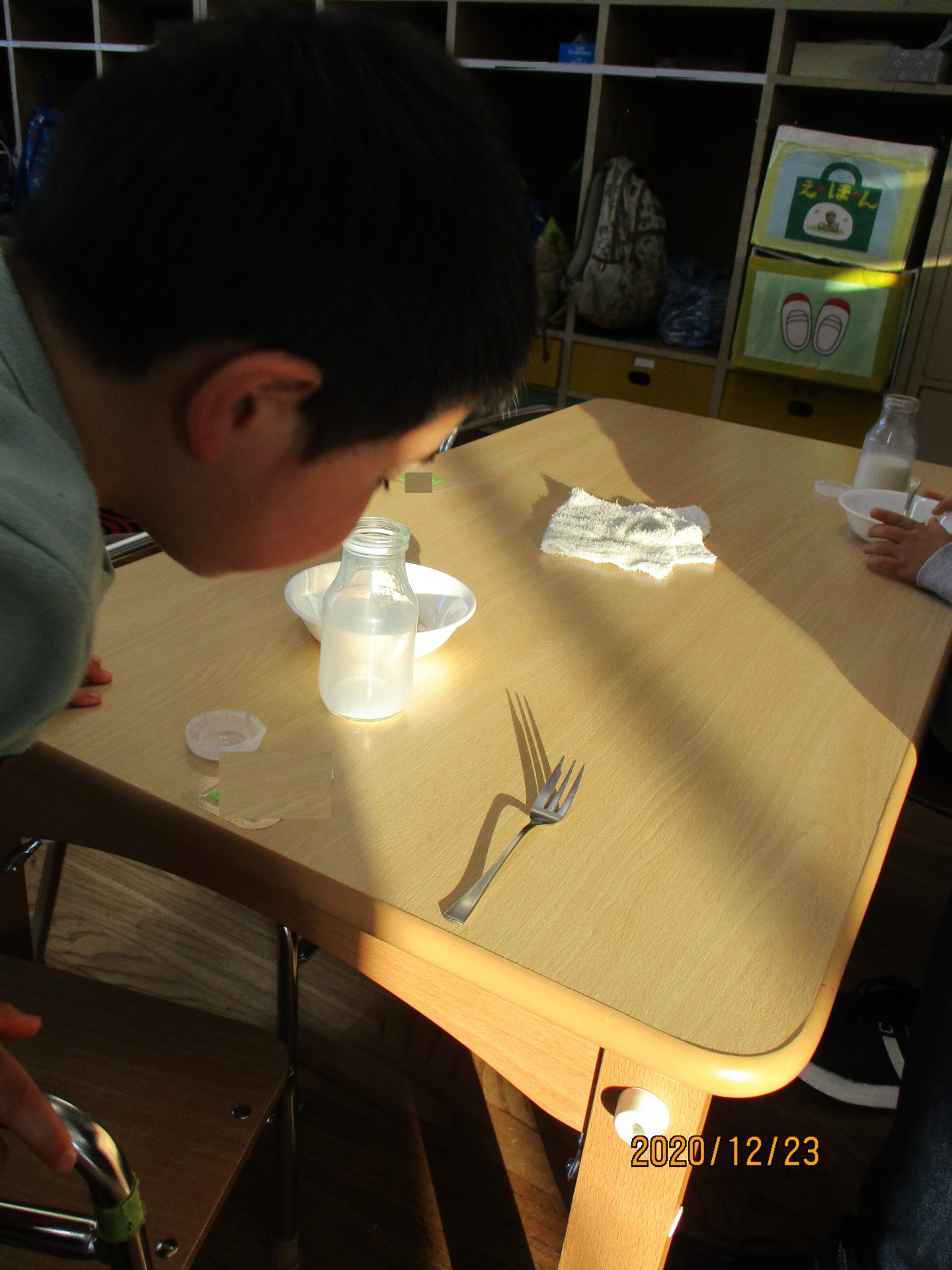 「きょうはどこにあるかな」と光をさがしていました。光のさす時間や天候を意識するのはまだ難しいですが、いつもと違うことにきづいていて、すごいなぁと思いました。