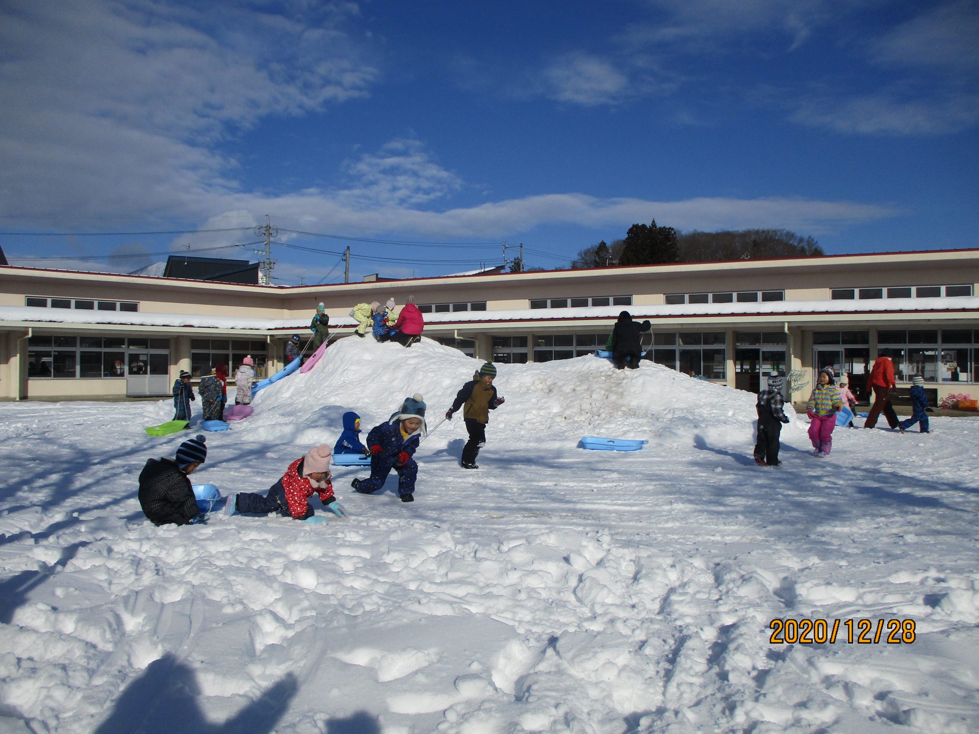 12月から大きな雪山でそりすべりやかまくらを作ったりして思いきり雪遊びを楽しんでいます。