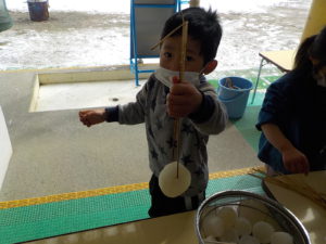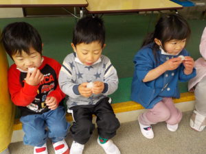 未満さんはこのあと大泣きしてしまい、以上児さんも園庭へ早々と戻りました。