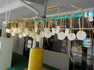 そう、今日は凍み大根(しみだいこん)作りの日です。飯田下伊那では昔からの保存食で、茹でた大根を干して乾燥させ、食べるときは戻して煮物などにつかいます。