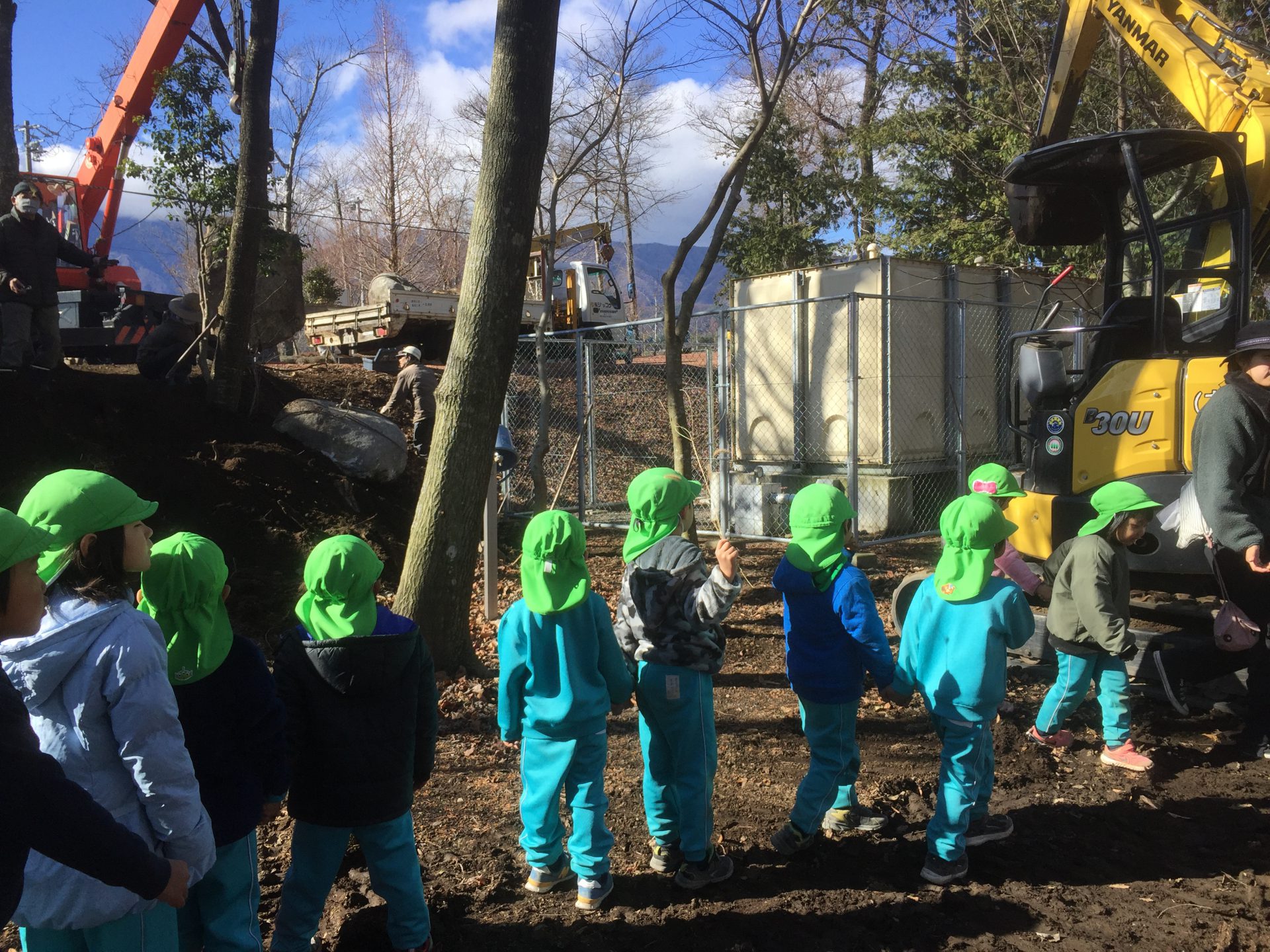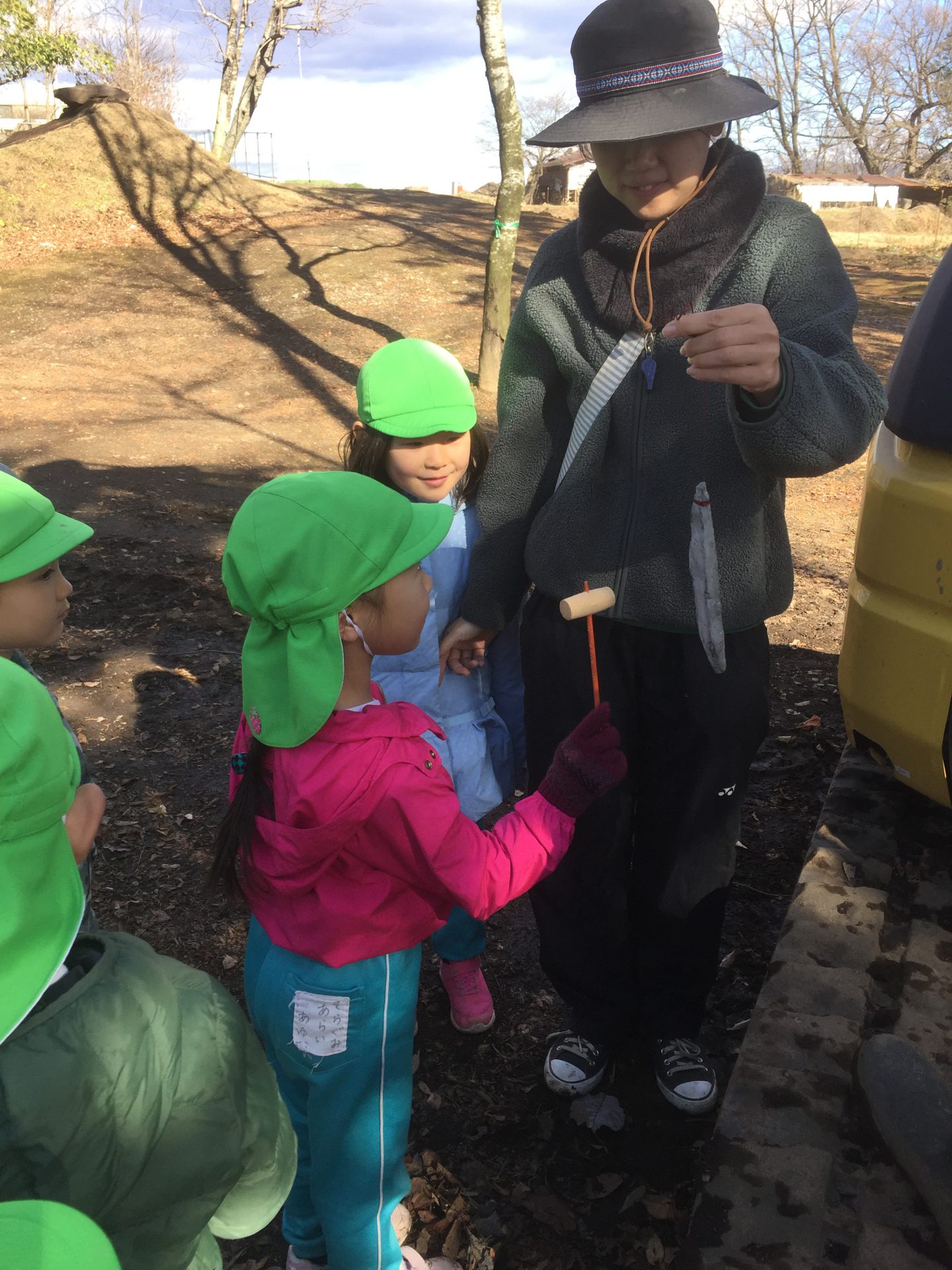 様子を見ていると、園長先生が、「サヌカイト」って言う、綺麗な音が鳴る岩がある。と教えてもらい、叩かせてもらいました。子供たちも「きれいなおと」と楽しんでいました。