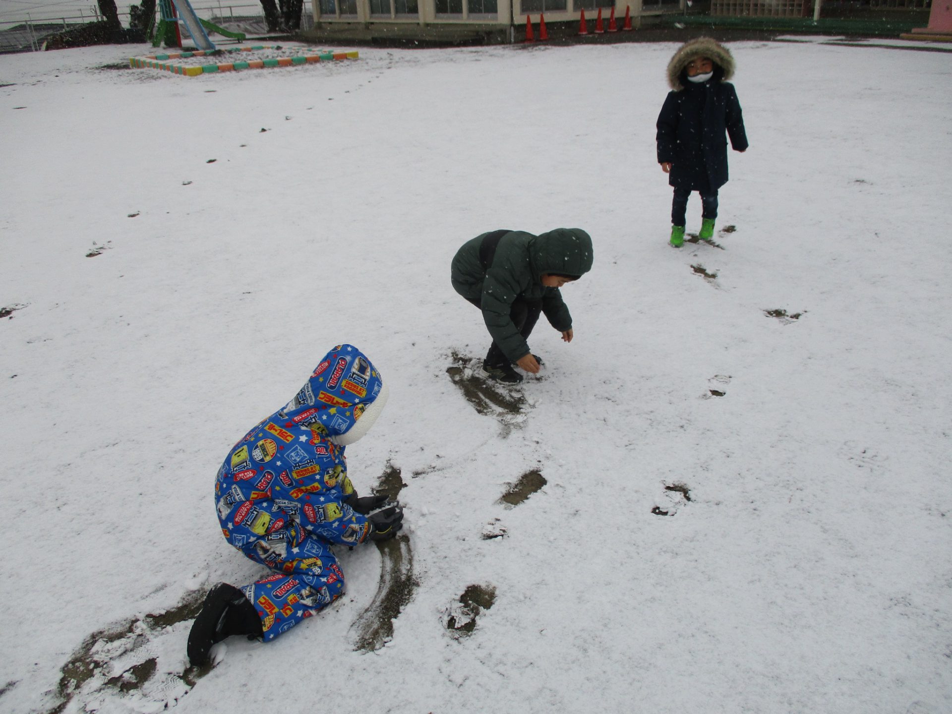 早速喜んで雪遊びをしていた子どもたちです。