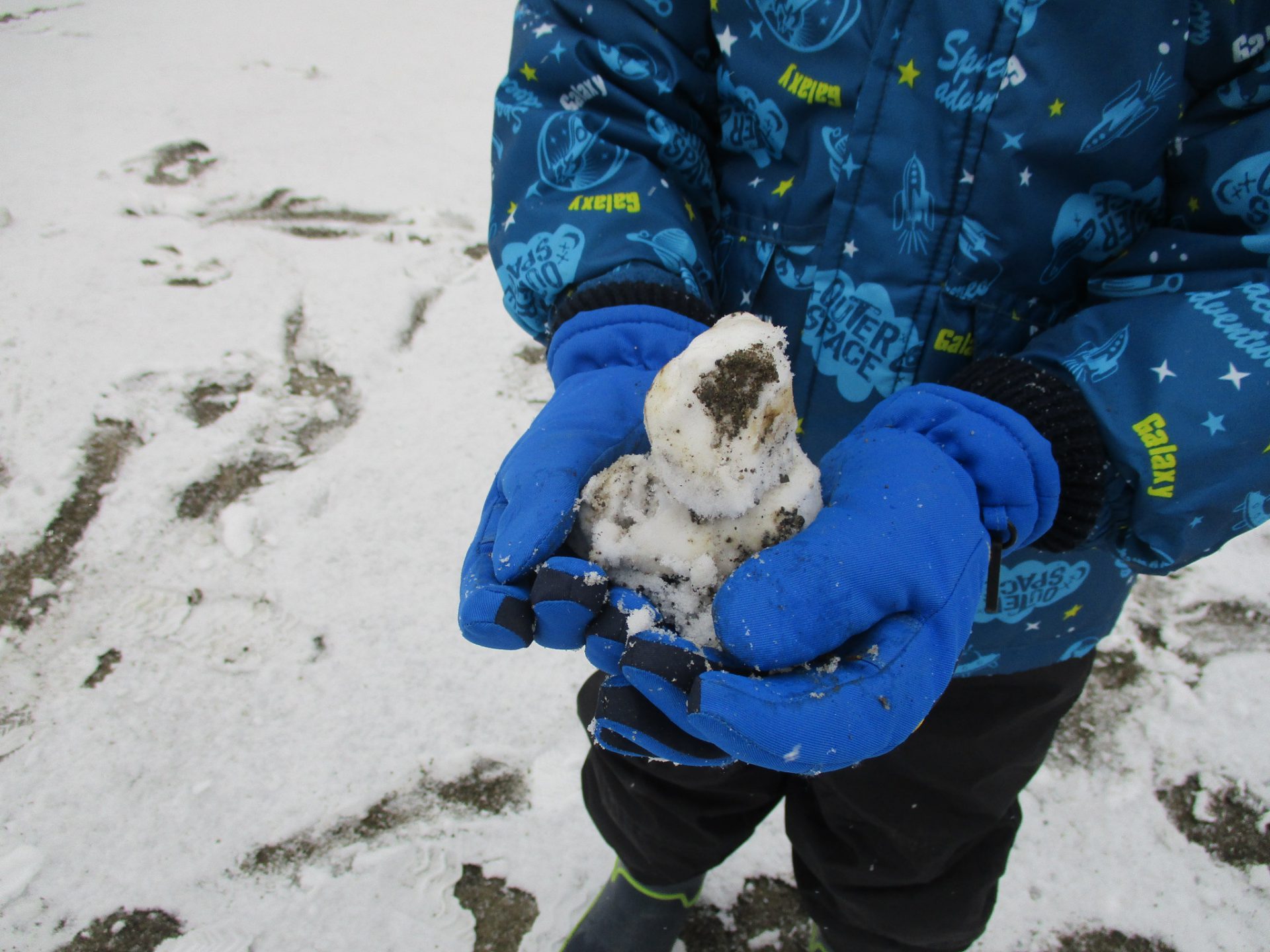 午前中はなかなか雪が積もらず、子どもたちも早く外へ出たい気持ちがいっぱいでしたが、午後には雪合戦や雪だるまといった雪遊びを楽しみました。雪の冷たい感覚を触れて楽しんだり、ぎゅっと固める感覚も楽しんでいました。