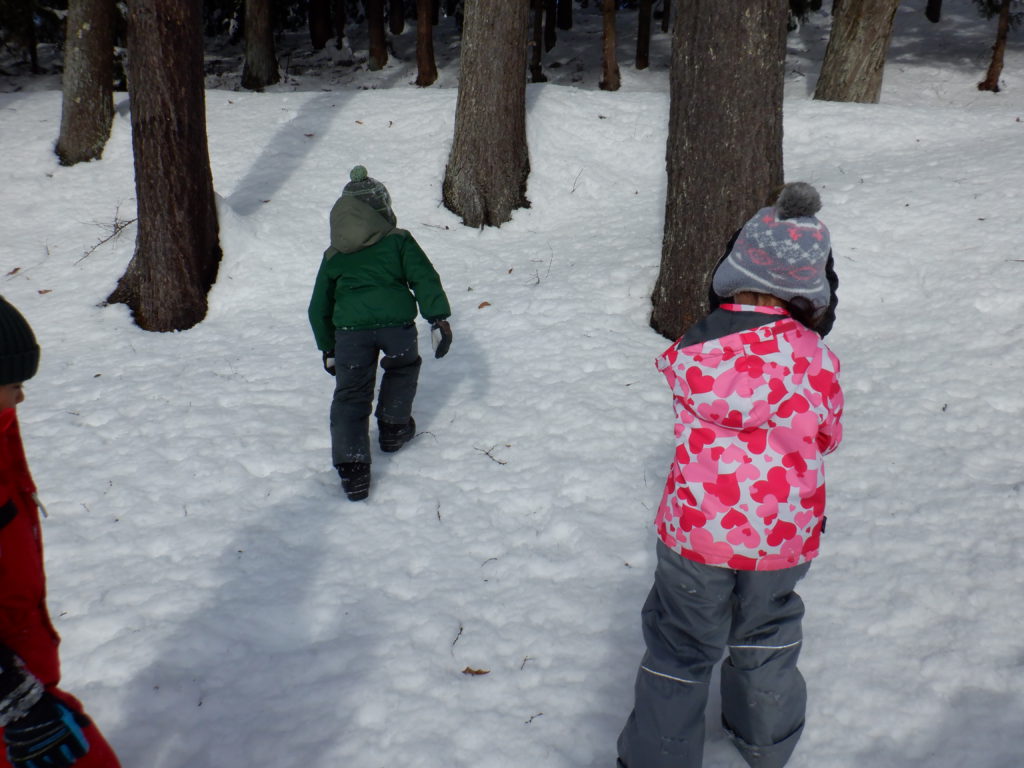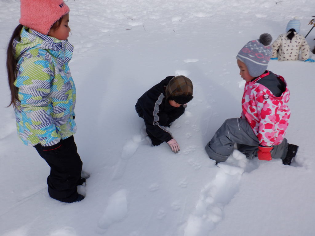 山が近い古間保育園の周りには、自分たち以外の足跡もたくさん。