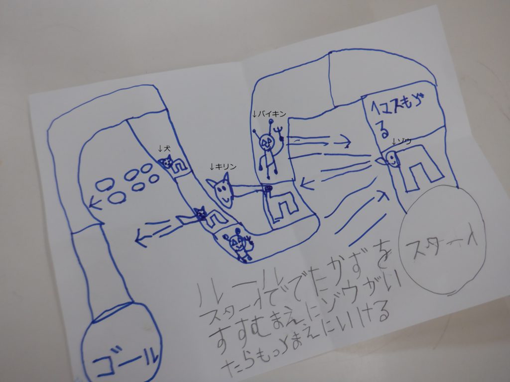 お部屋で遊んでいるすごろくのルールを取り入れながら、オリジナルのすごろくを作ってきてくれたお友達も。