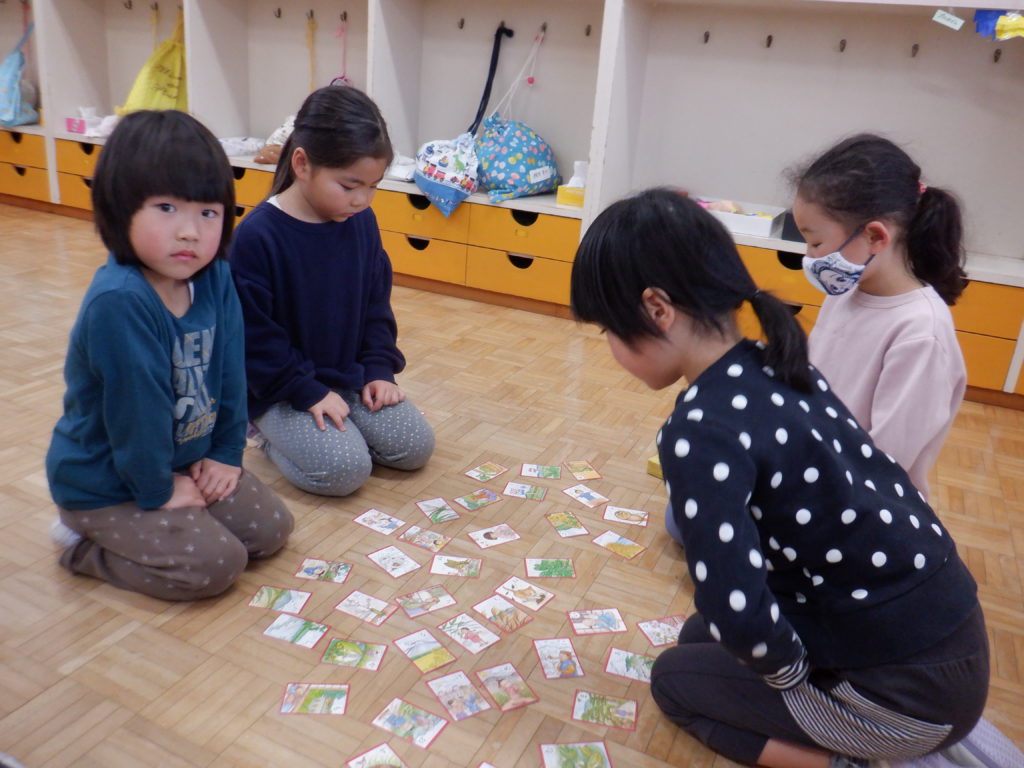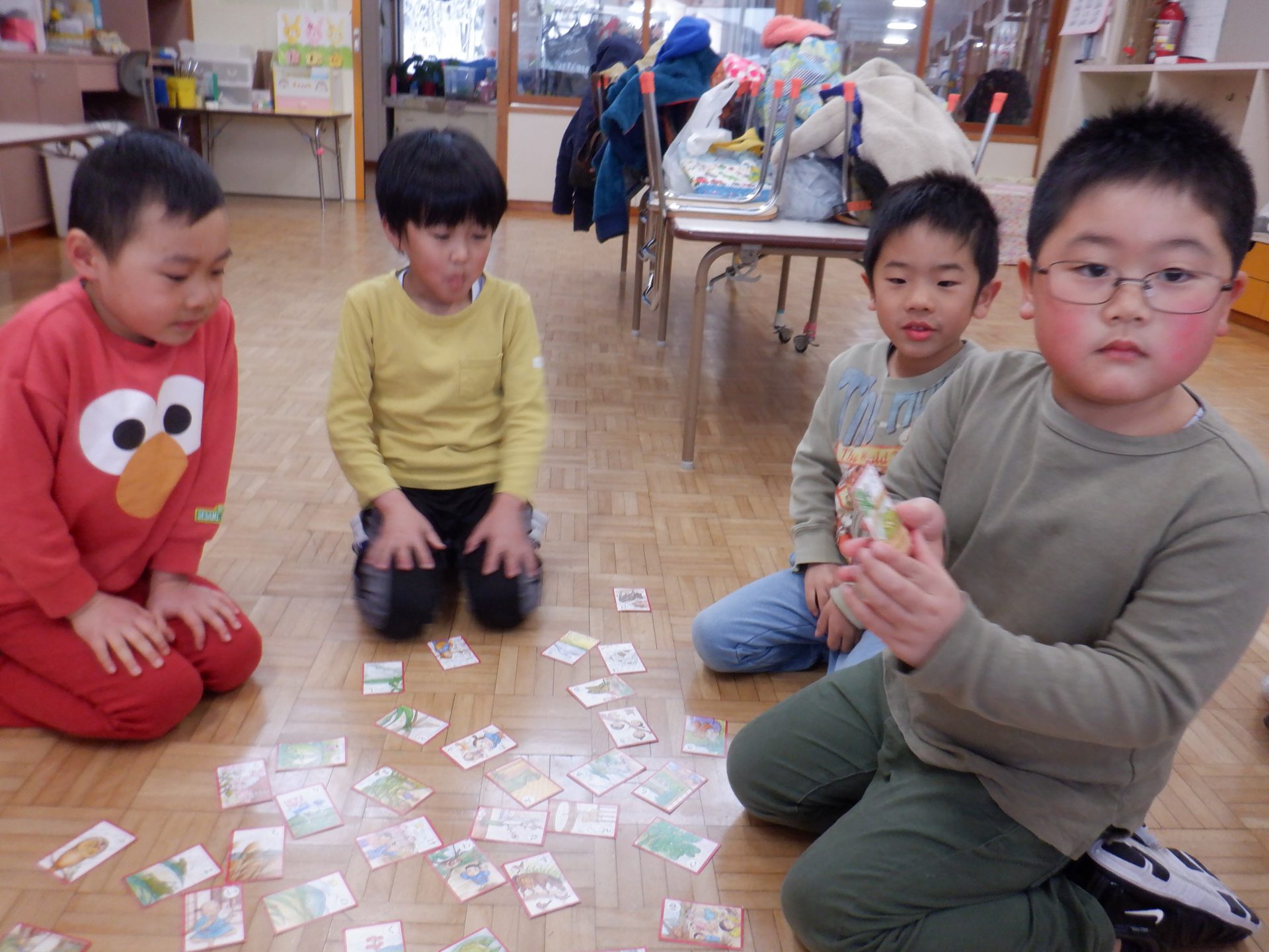 年長さんはちょっと難しい”一茶かるた”に挑戦です。