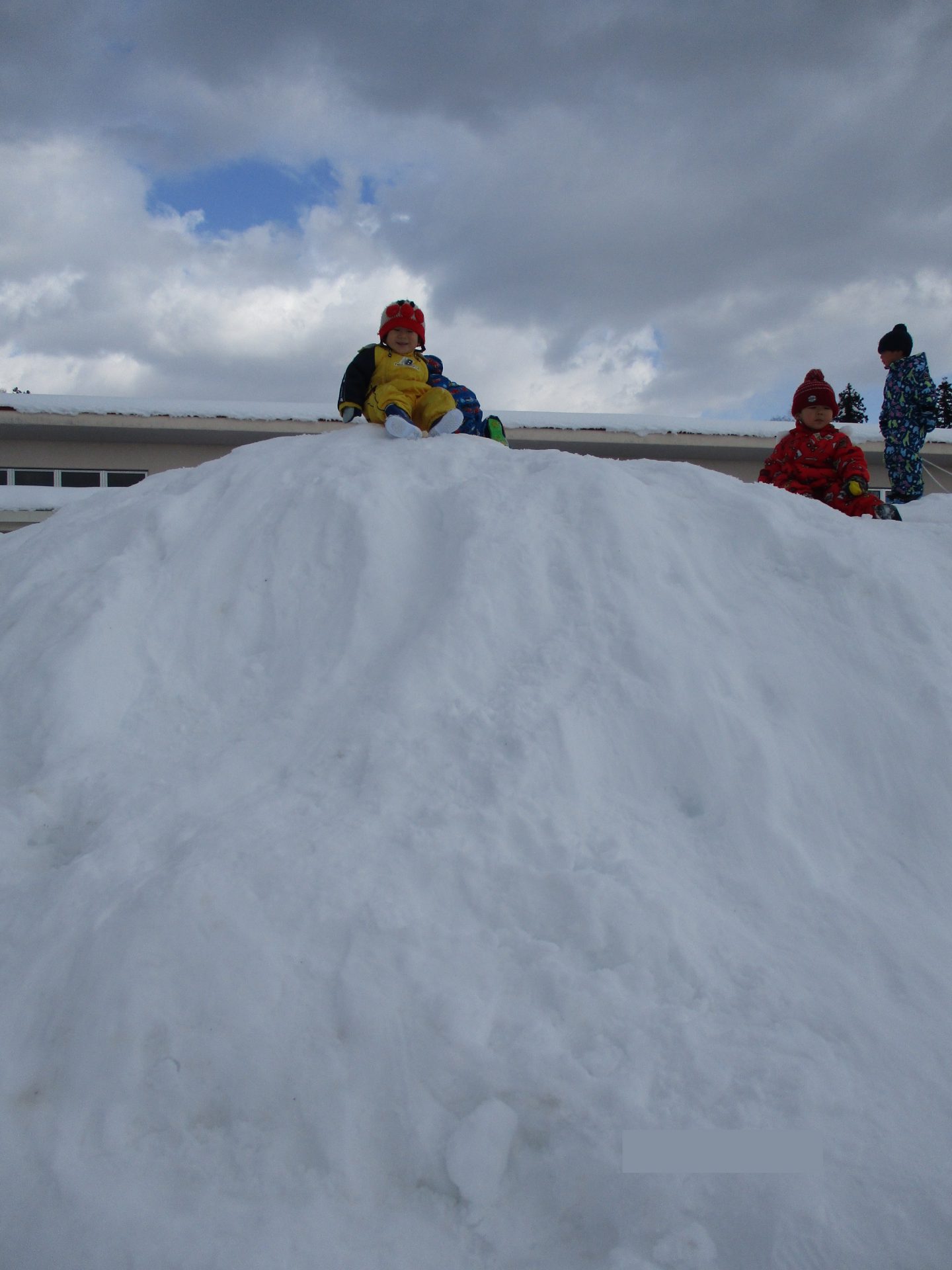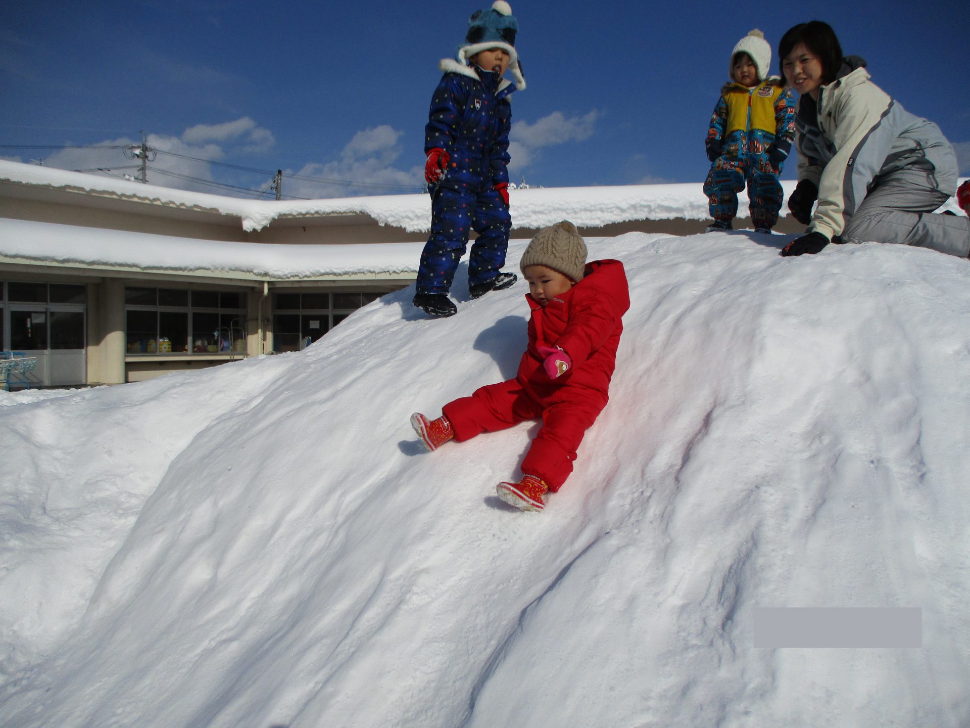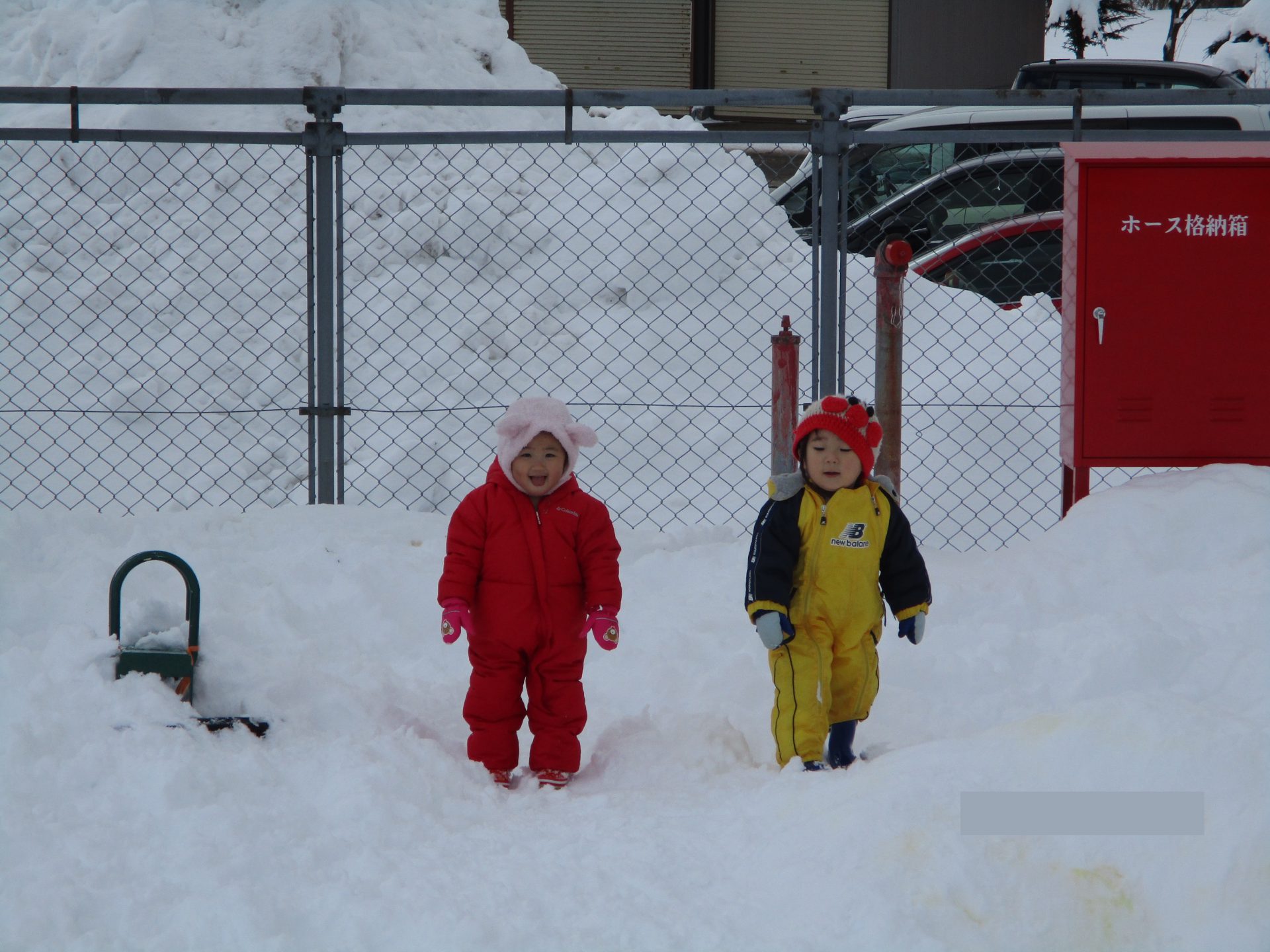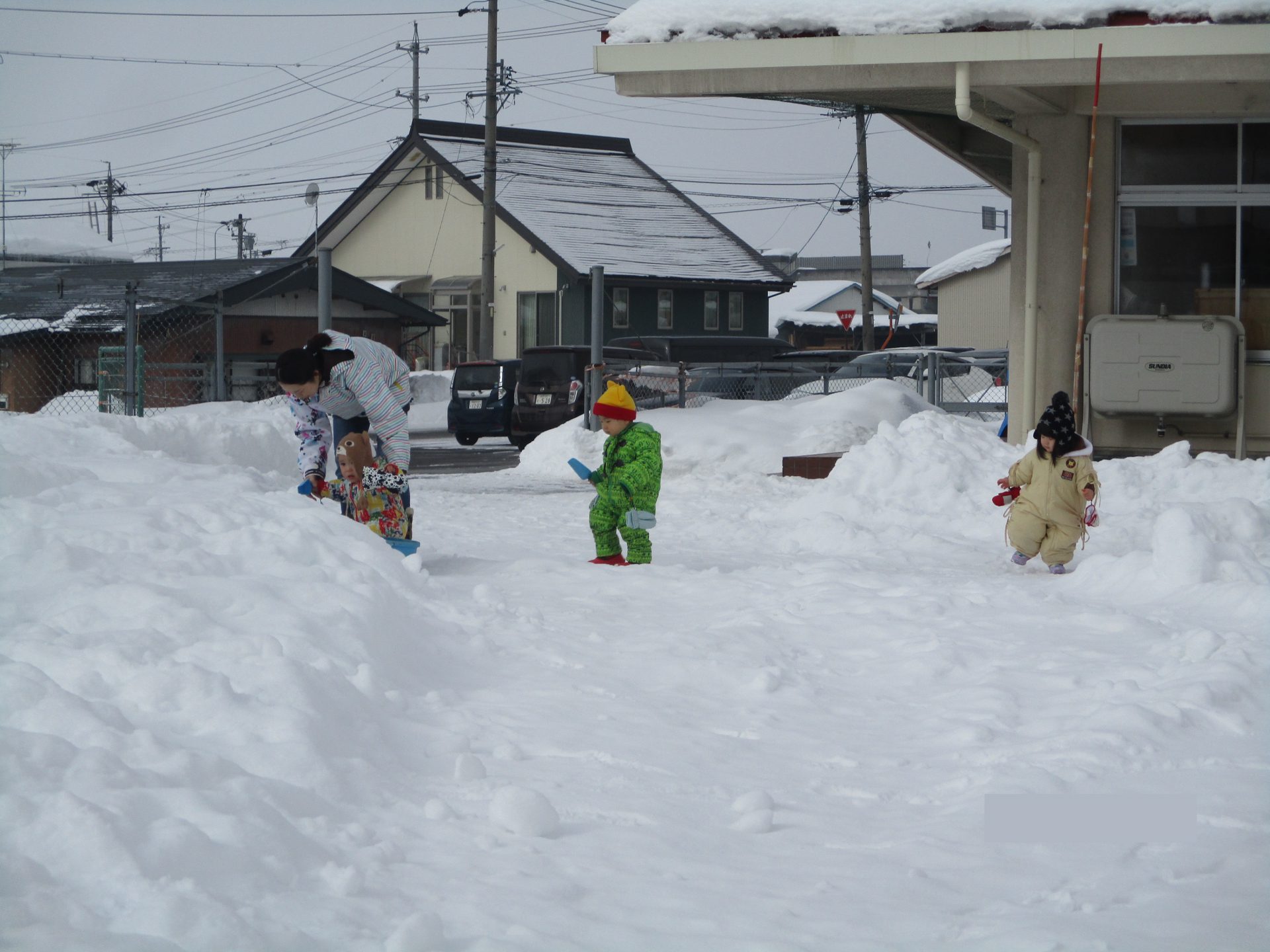 年末年始を中心に大雪に見舞われた信濃町。園庭には、真っ白の雪と大きな雪山が!