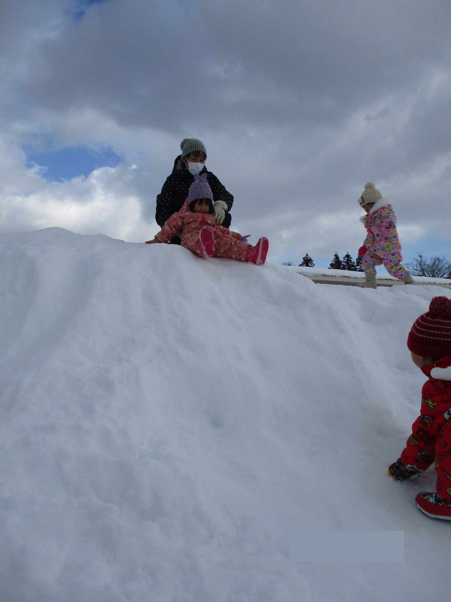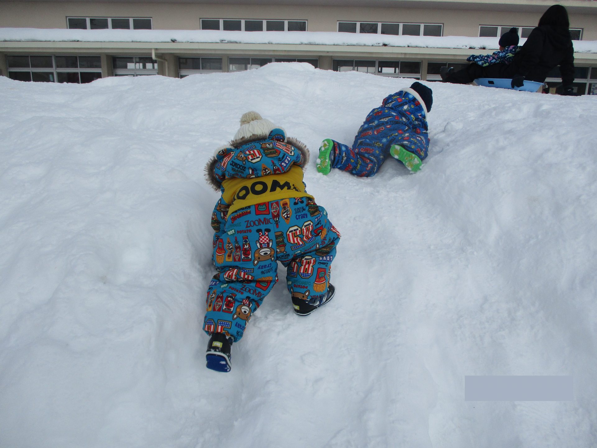 1歳児さんは・・・なんと!とっても大きな雪山に挑戦!
