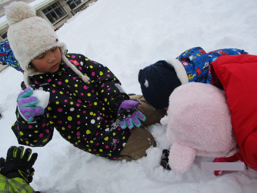 ゆっくりと雪に触れるなかで、雪を遠ざけていた子も雪を持てるようになってきました。