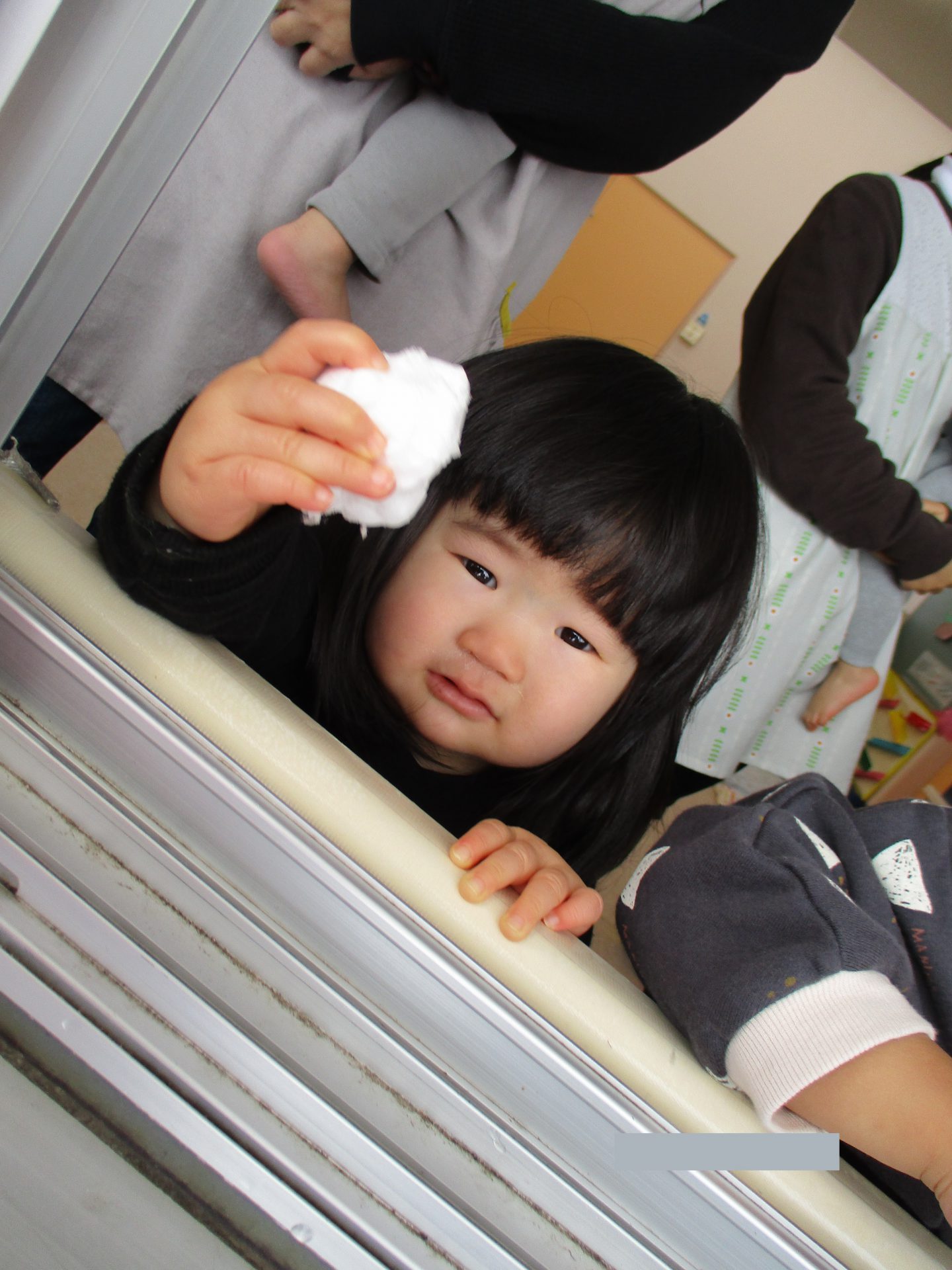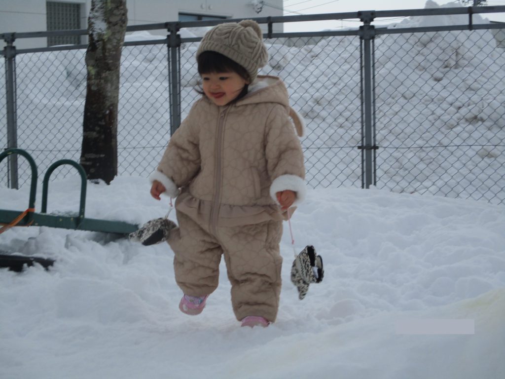 1歳児さんは、外を見て「ゆきだ!」と大喜び。「お外行く?」と毎日外遊びを心待ちにしています。