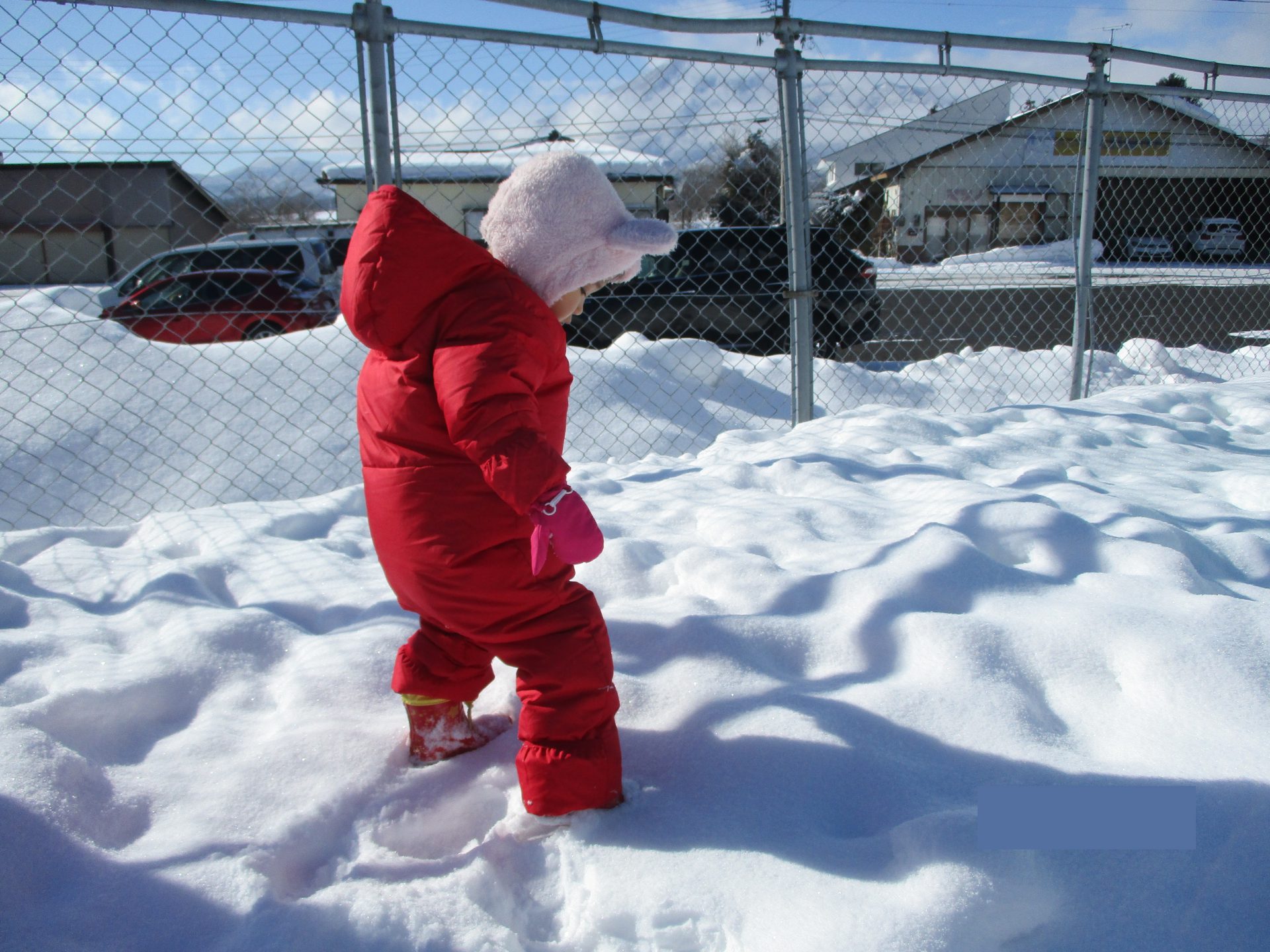 スキーウェアを着て、雪の上を歩く。大人でも大変ですよね。